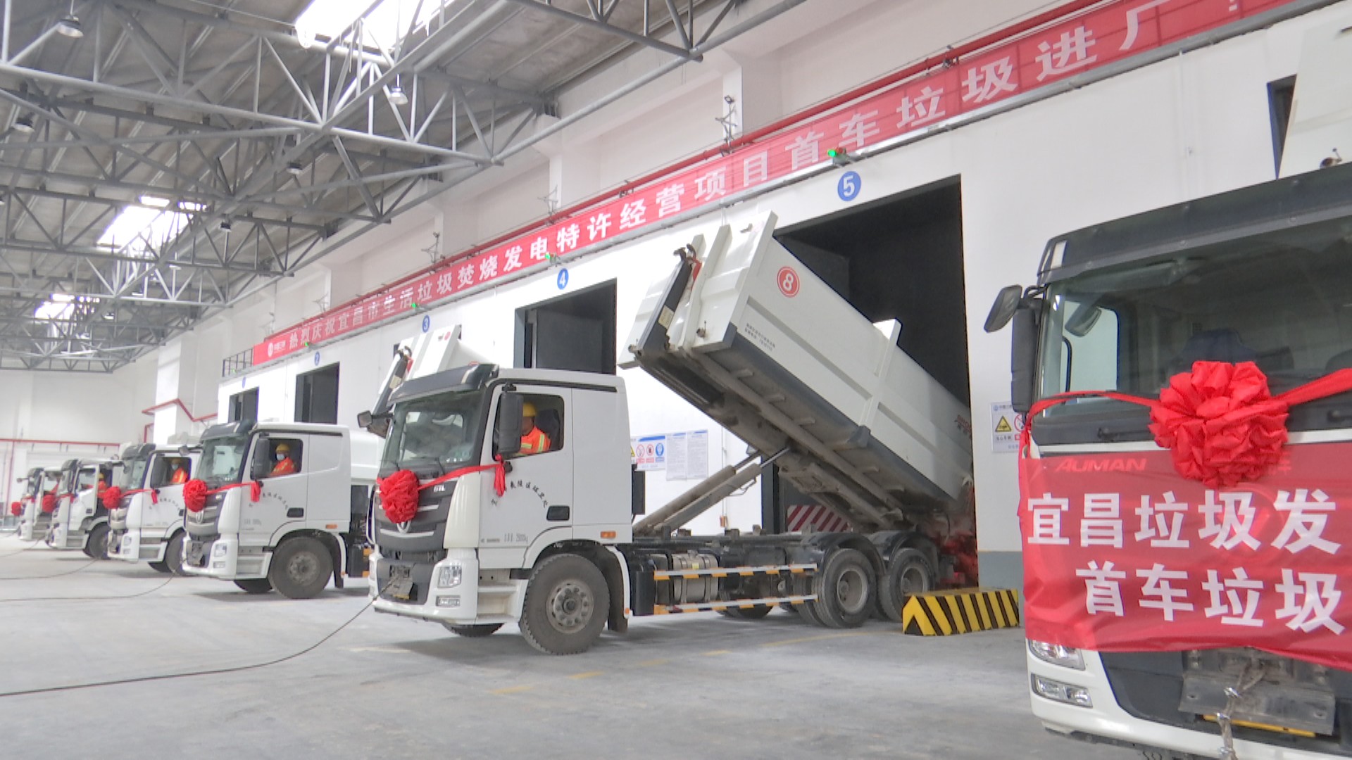 Six garbage transfer trucks unloaded the waste smoothly at the site. This waste-to-energy plant will be ready for official ignition and operation this April.