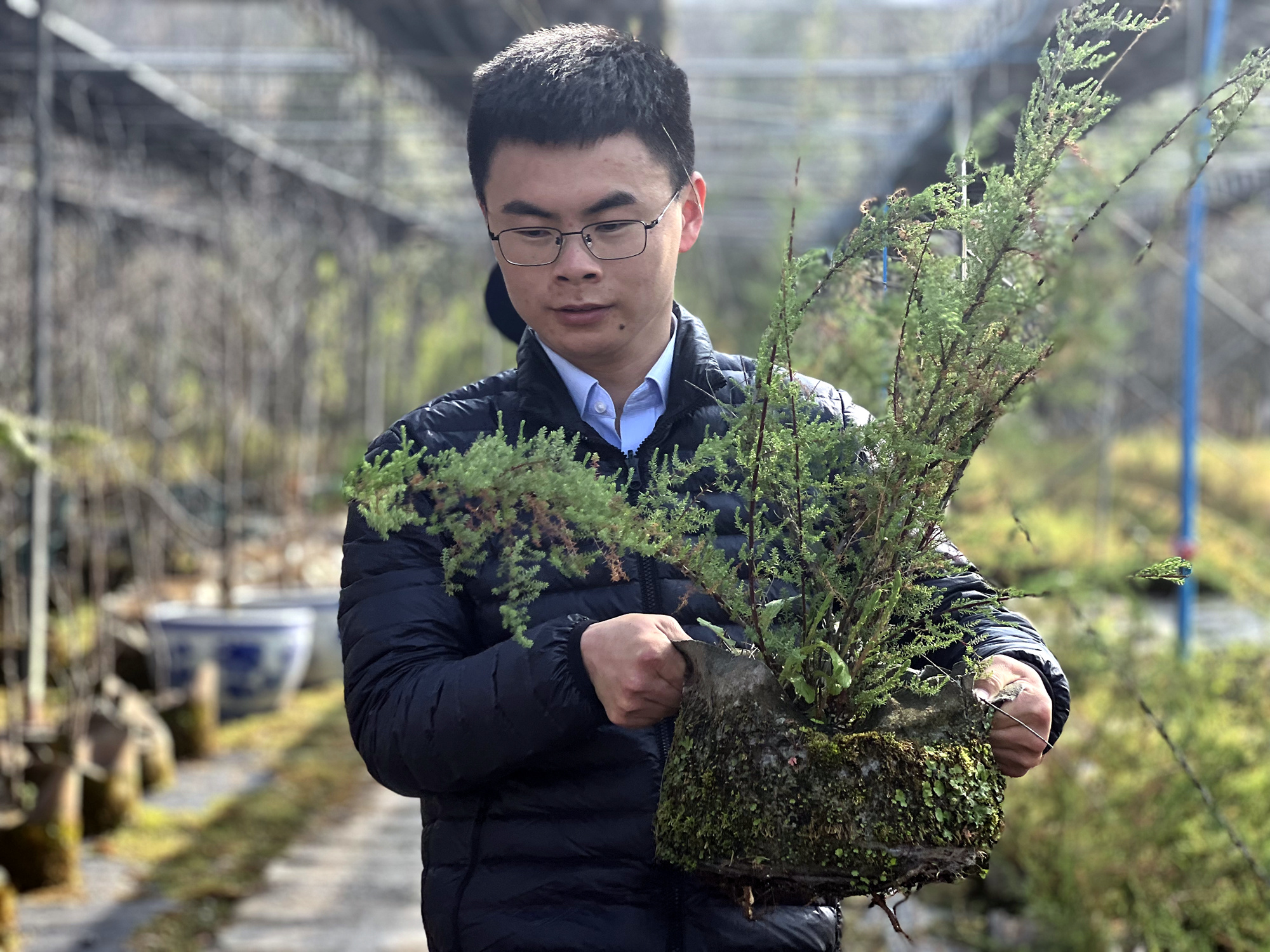 A researcher selects rare plants from the nursery and prepares them for replantation. Photo by Guo Xiaoying.The six rare plant species transplanted at this time were all artificially cultivated, including acer wilsonii, myricaria laxiflora, phoebe hunanensis, phoebe chekiangensis, taxus chinensis and davidia involucrata,. Among them, the seedlings for taxus chinensis and davidia involucrata are more than 10 years old.