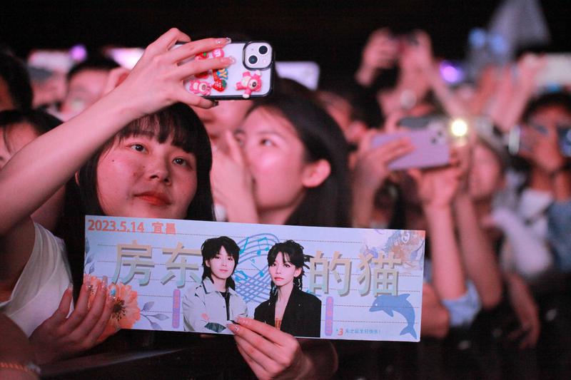 The Landlord's Cats, an all-female folk music band, performed on the second evening of the "Cheer up, Yichang! - Dolphin Music Festival" in Yichang Juanqiaohe Wetland Park on May 13 and 14.