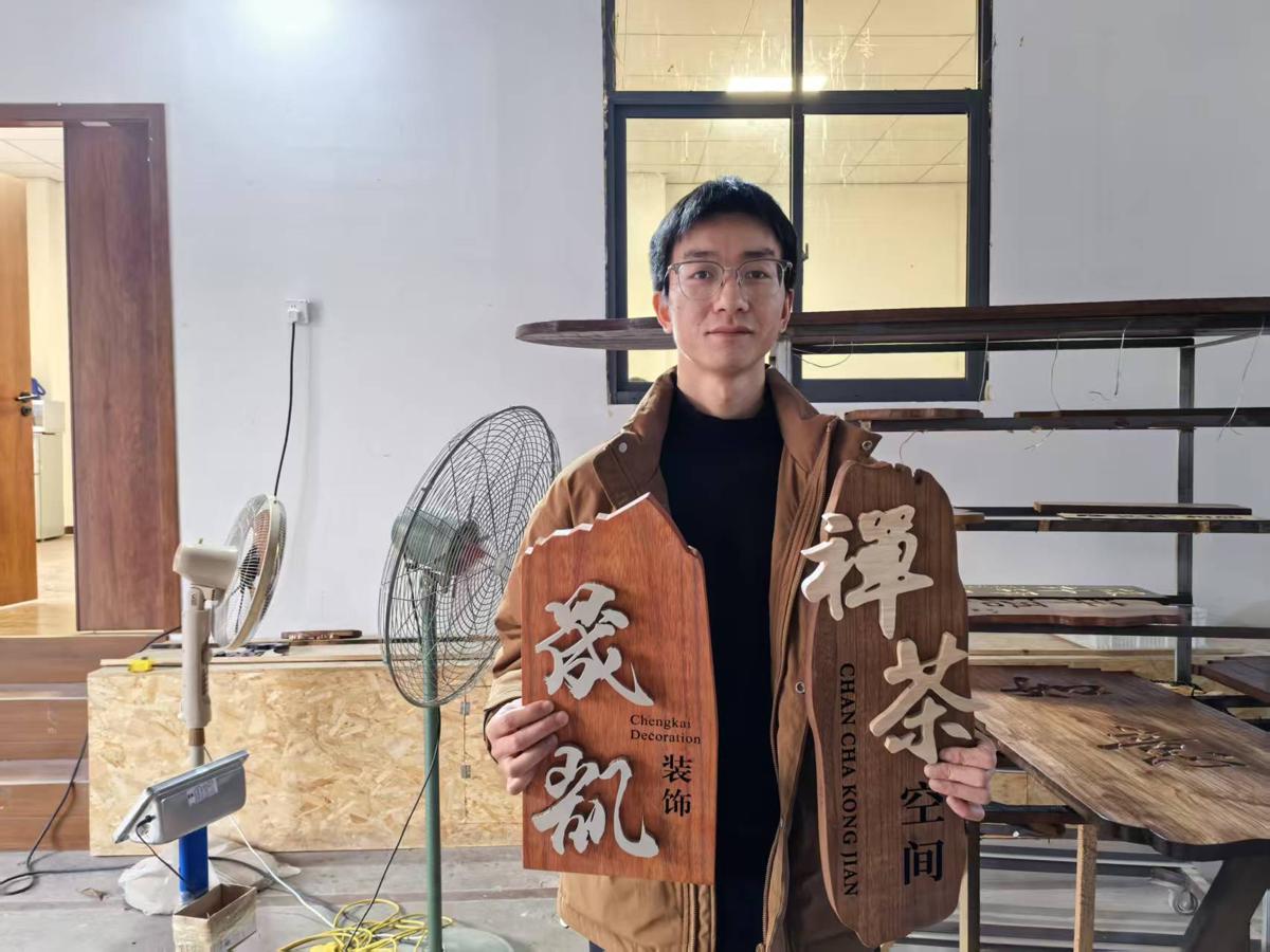 After graduating in 2017 and venturing into the fiercely competitive online apparel industry, Ren realized he needed to find a niche. His solution: custom wooden plaques. He founded a company in Yuan'an county in 2022.