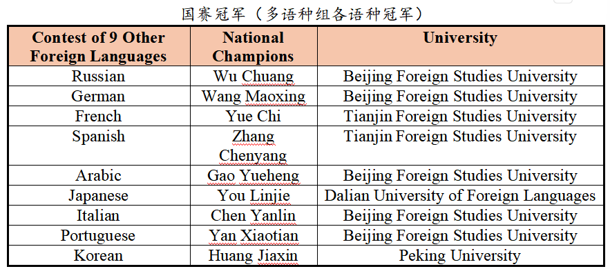 Promoting cross-cultural exchange, the UCC contest features 11 language categories, including English, Russian, German, French, Spanish, Arabic, Japanese, Italian, Portuguese, Korean, and Chinese as a second language for international learners. 5 students from the Beijing Foreign Studies University took home the championship of Russian, German, Arabic, Italian and Portuguese Contests.