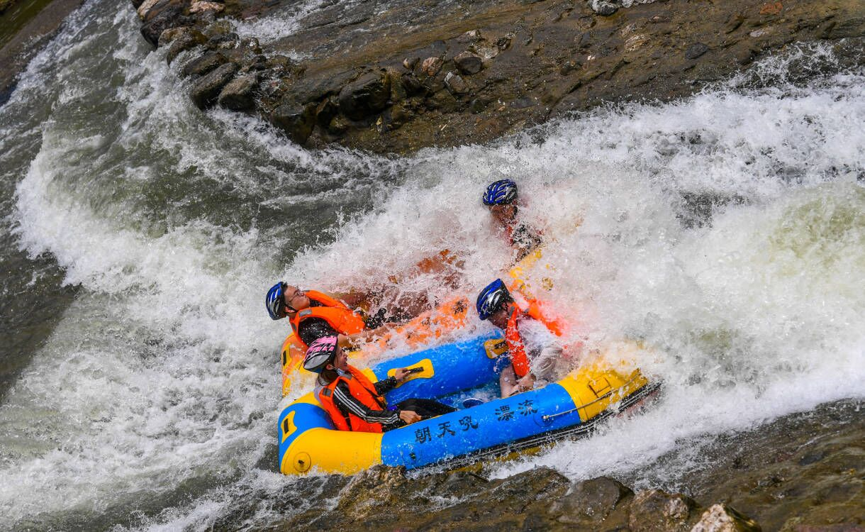 Chaotianhou’s "Double River Drifting Channel" has two rivers - the Kongzi River and the Xiayang River - open to rafting. As you travel down the course, you will see many strangely shaped stones or peaks, such as Peacock Ridge and Camel Peak. The highlight of the adventure lies in a breathtaking waterfall at the end – don’t panic, you don’t go over it, you just pass by it.