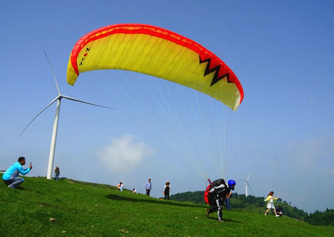 The scenic spot has six main tourist attractions. You can go horse riding, do grass skiing and archery, camp and barbecue outside, or do off-road biking or karting. You can even go hang gliding.