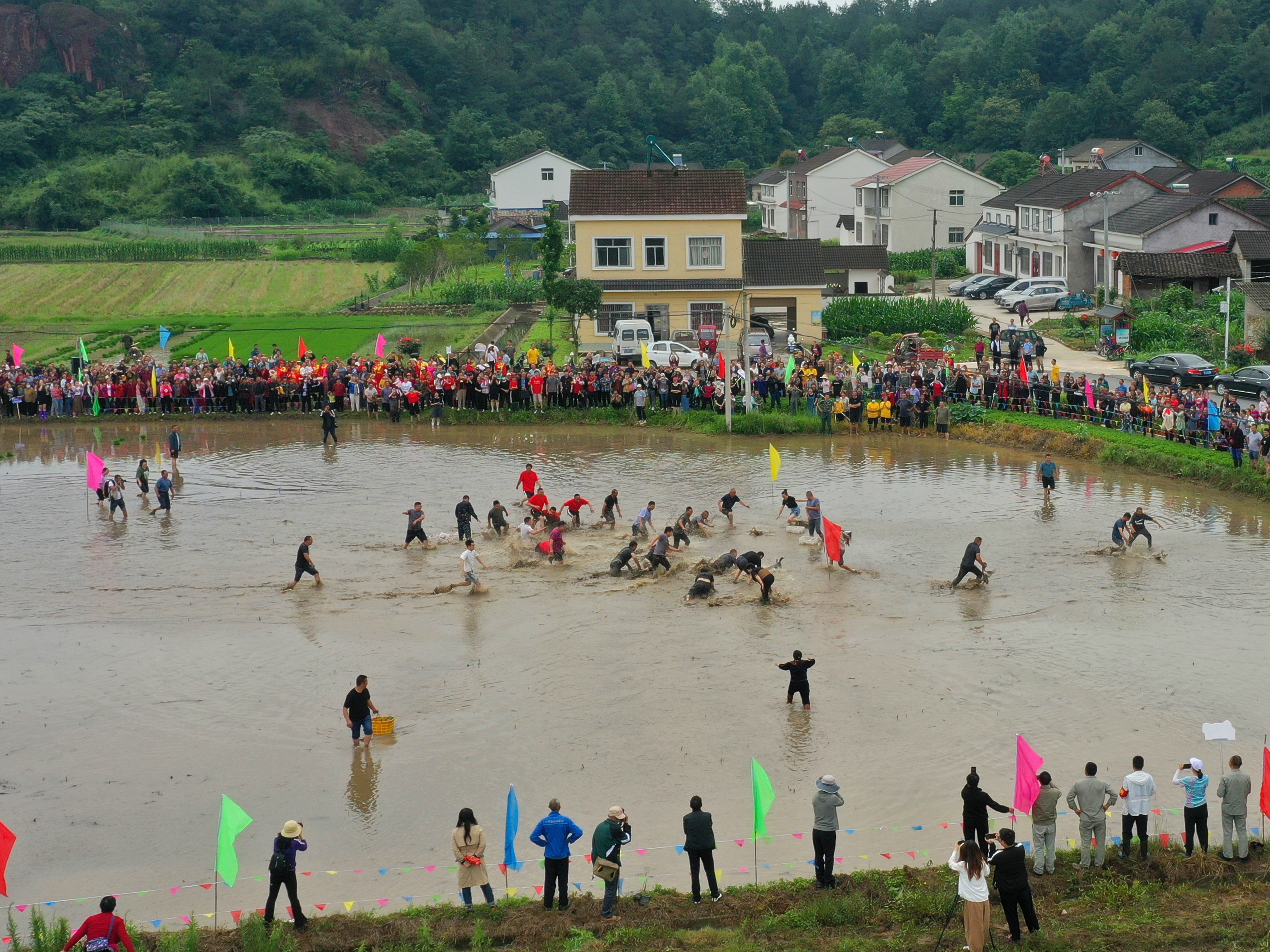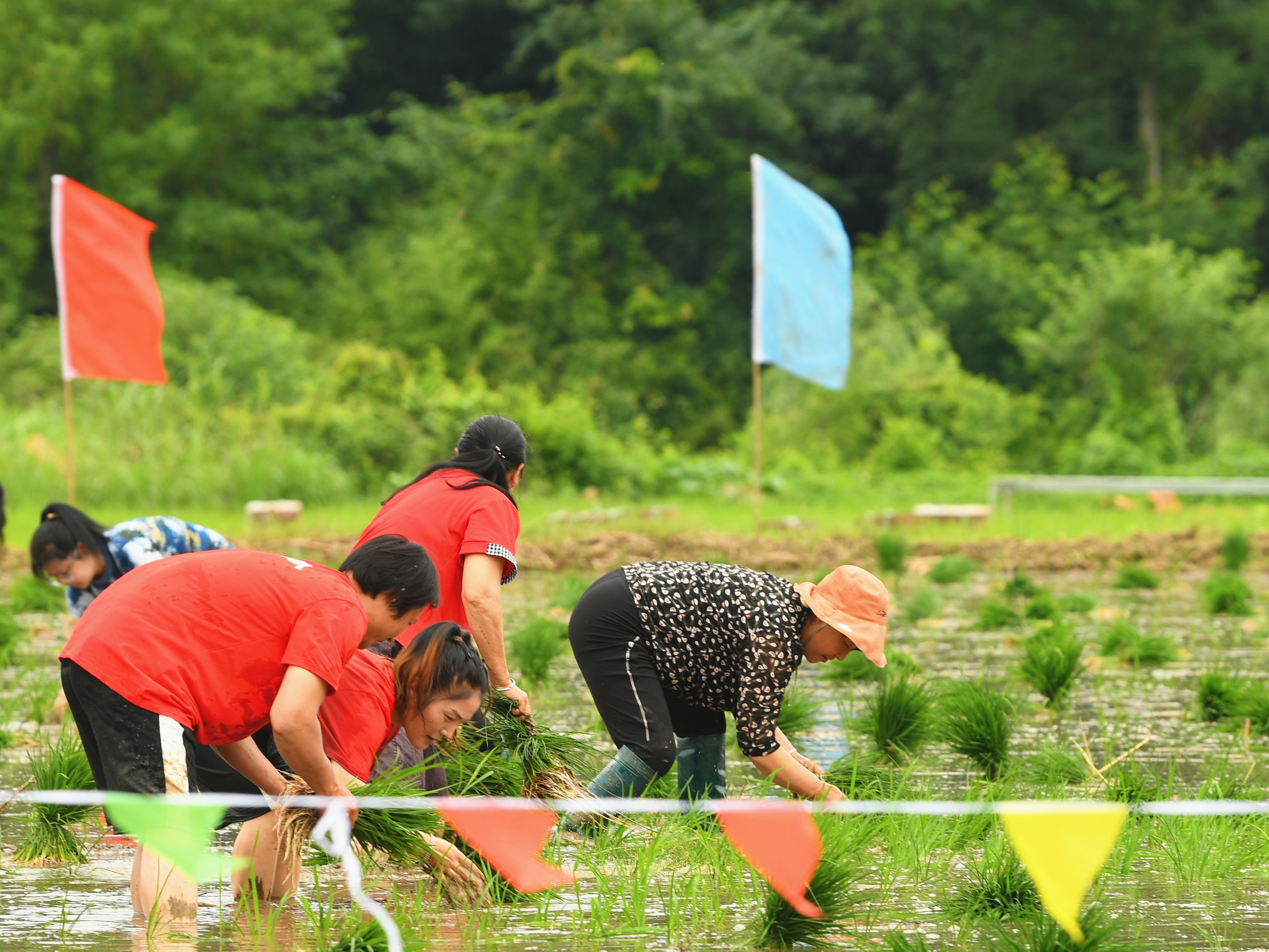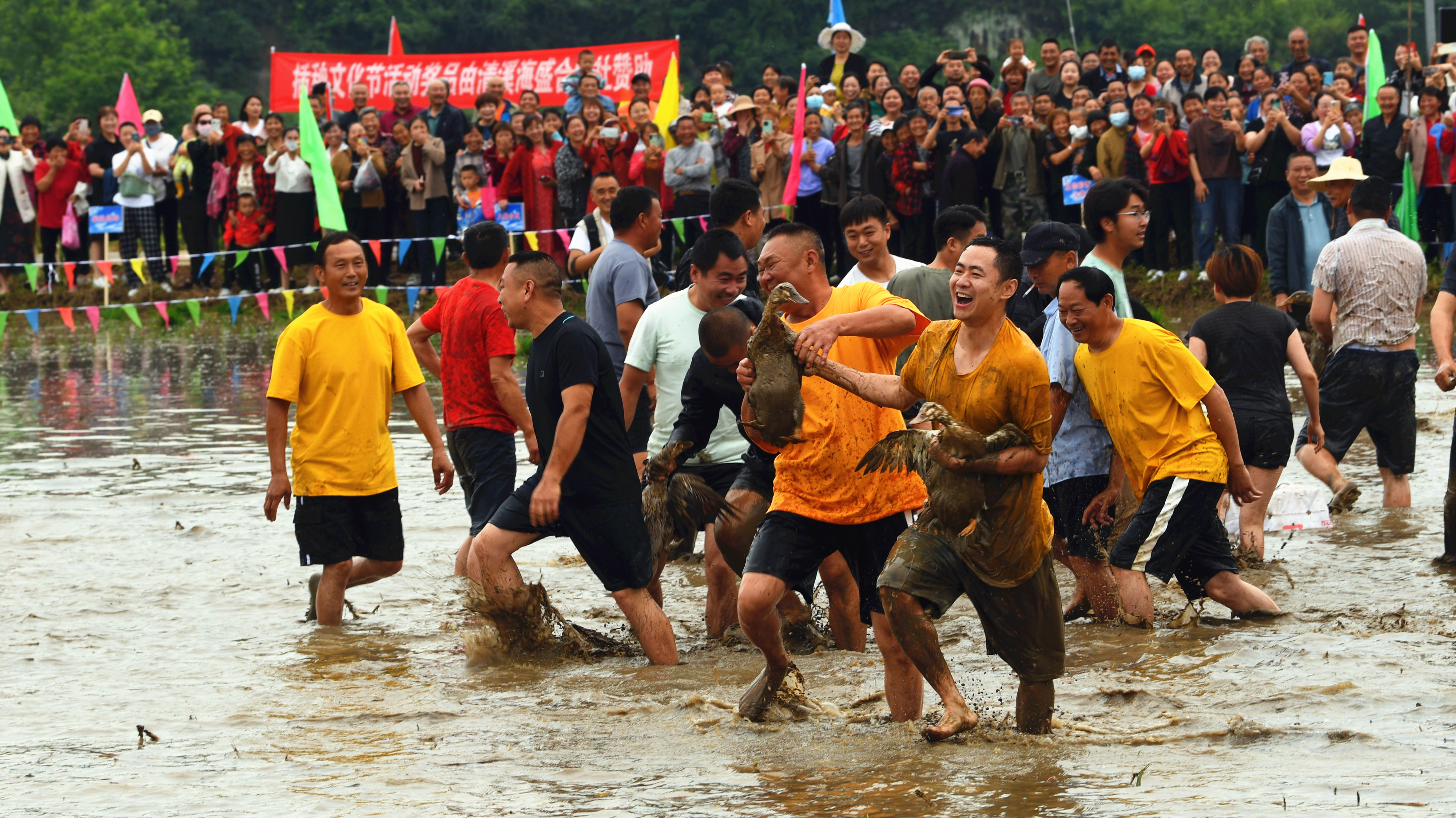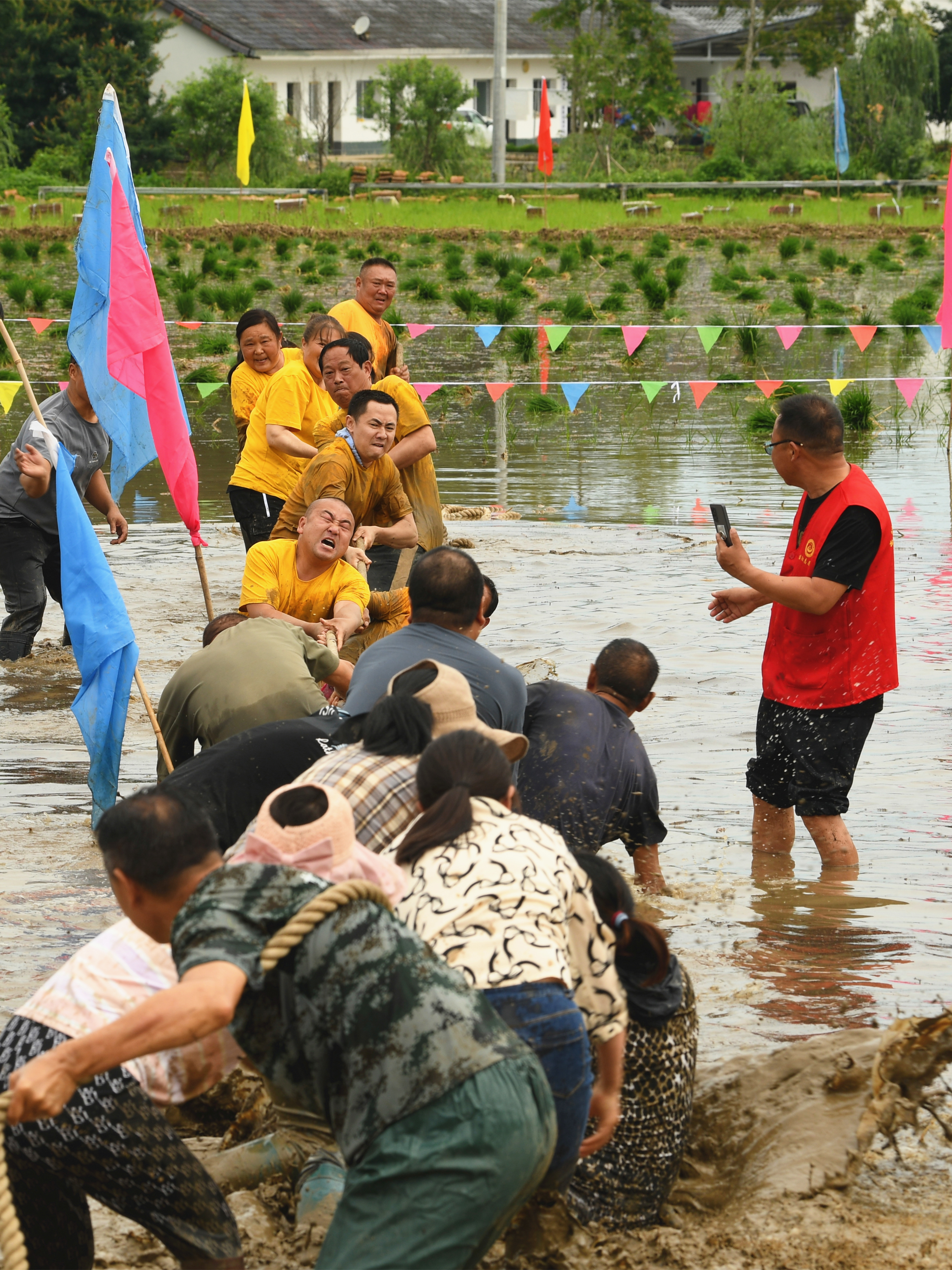 Dangyang's first Rice Transplanting and Farming Culture Festival opened on June 6 in Yichang. Attendees rolled up their pants and walked barefoot into the paddy fields, enjoying activities such as transplanting rice seedlings, catching ducks and tug of war.