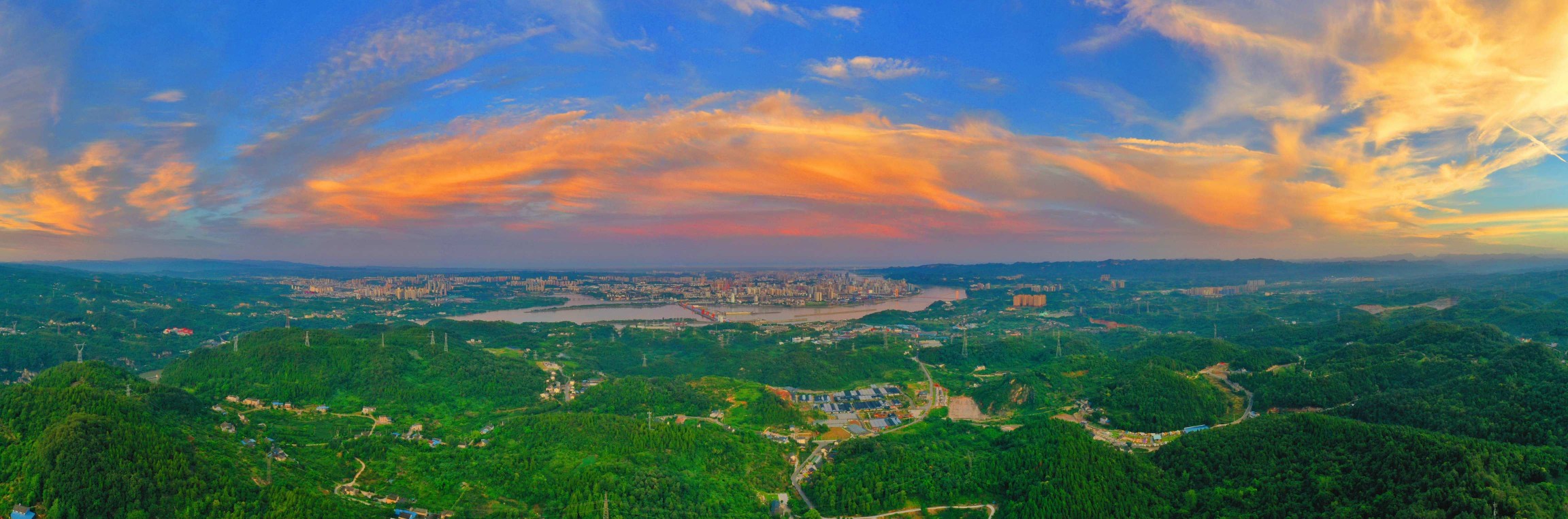 On a summer evening after rain, as the sun sets upon Yichang's rivers and mountains, golden clouds are strung across the sky.
