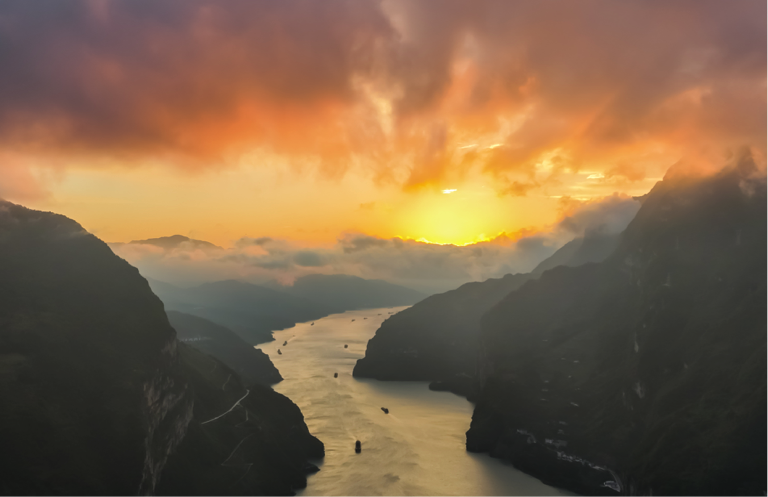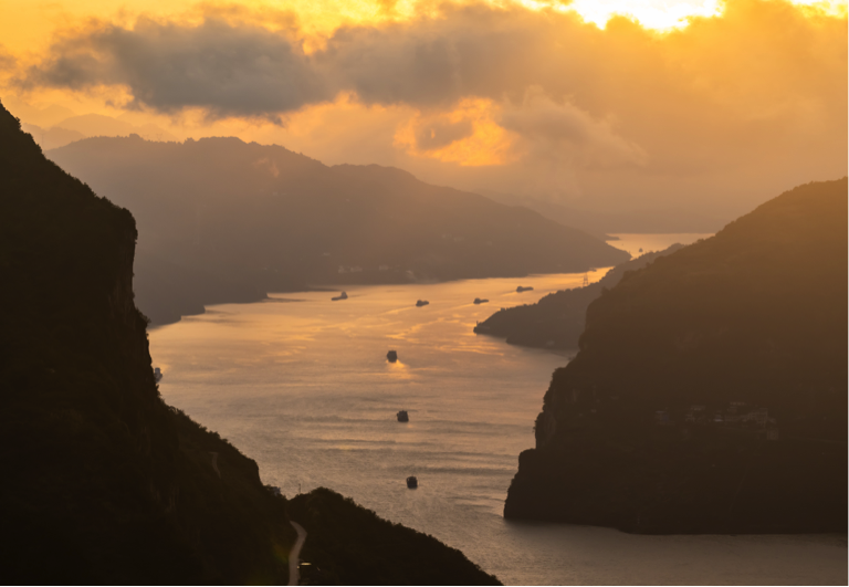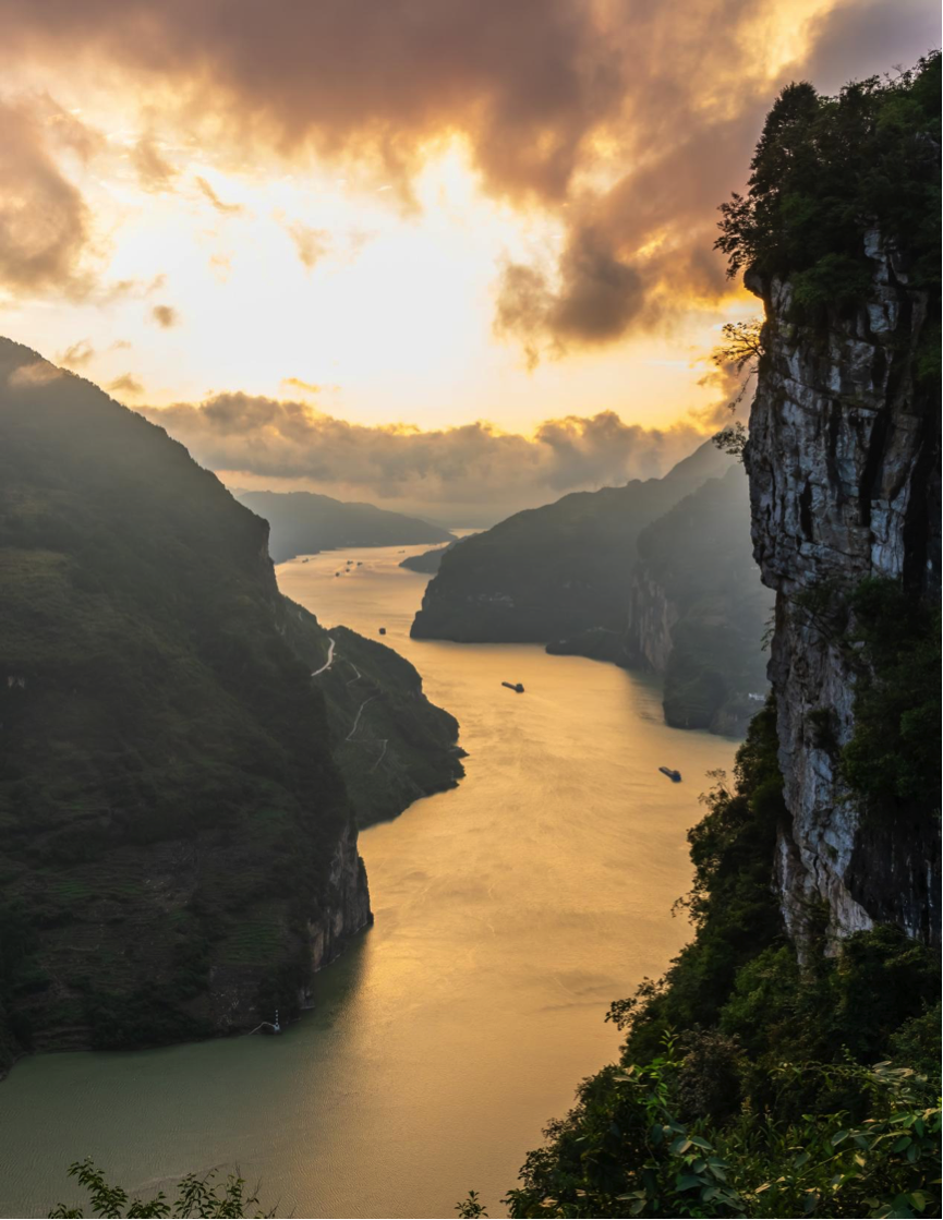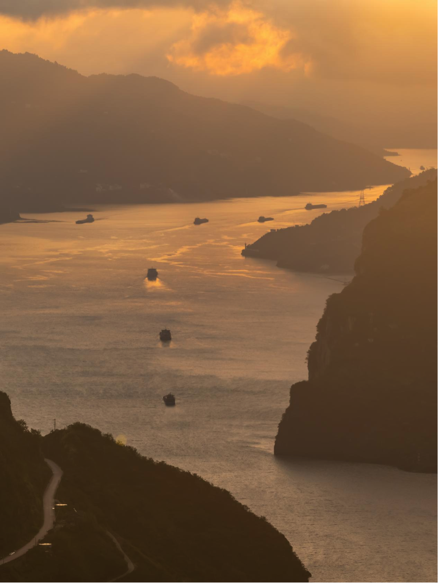 Water level in the Three Gorges Reservoir have recently been rising, causing the river surface to widen. Pictured here are the many vessels that shuttle back and forth along the river, bathed in sunlight at the Xiling Gorge section of the Yangtze River in Yichang.