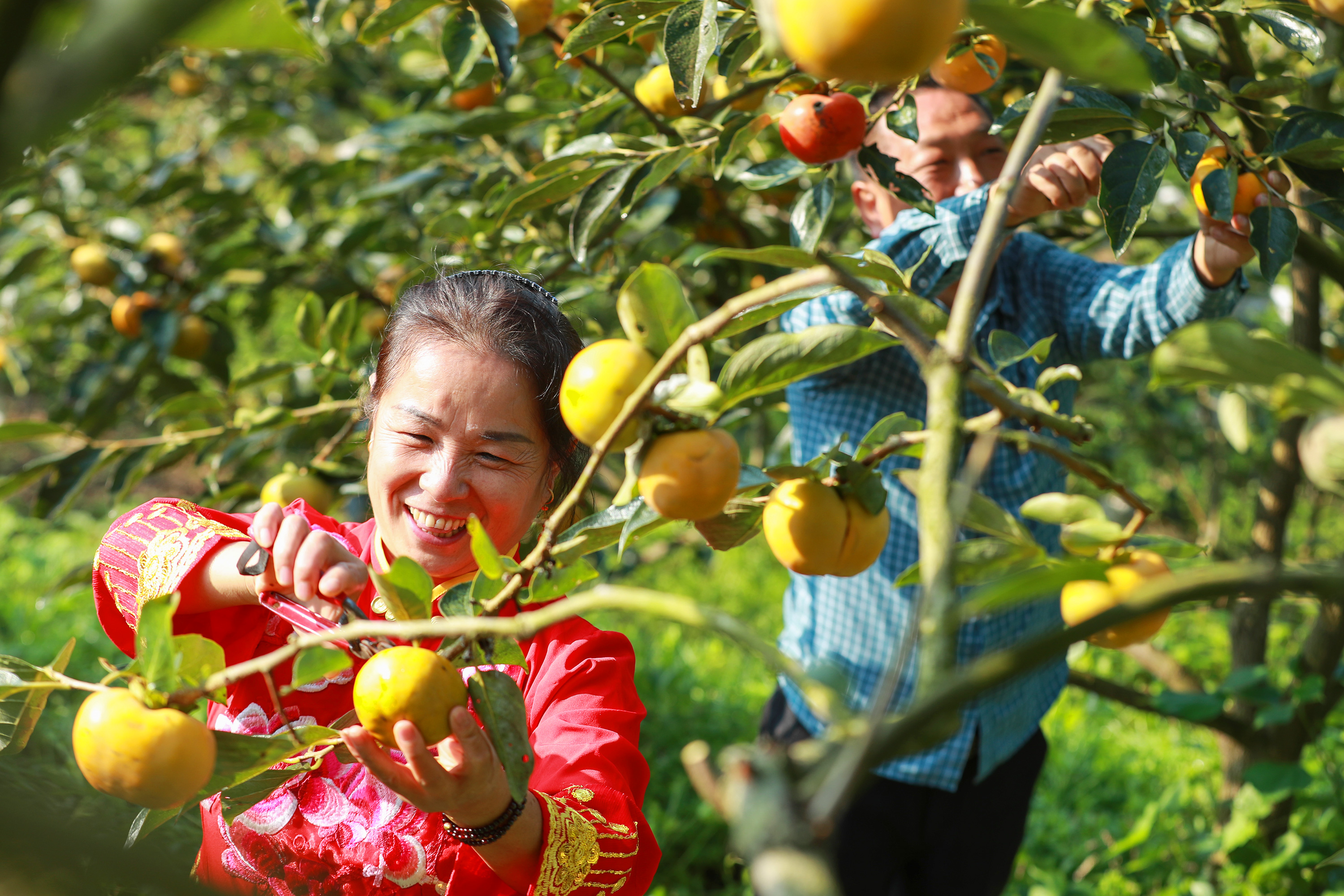Apple-persimmon harvest in Jiuwantang Village, Zigui County, Yichang City