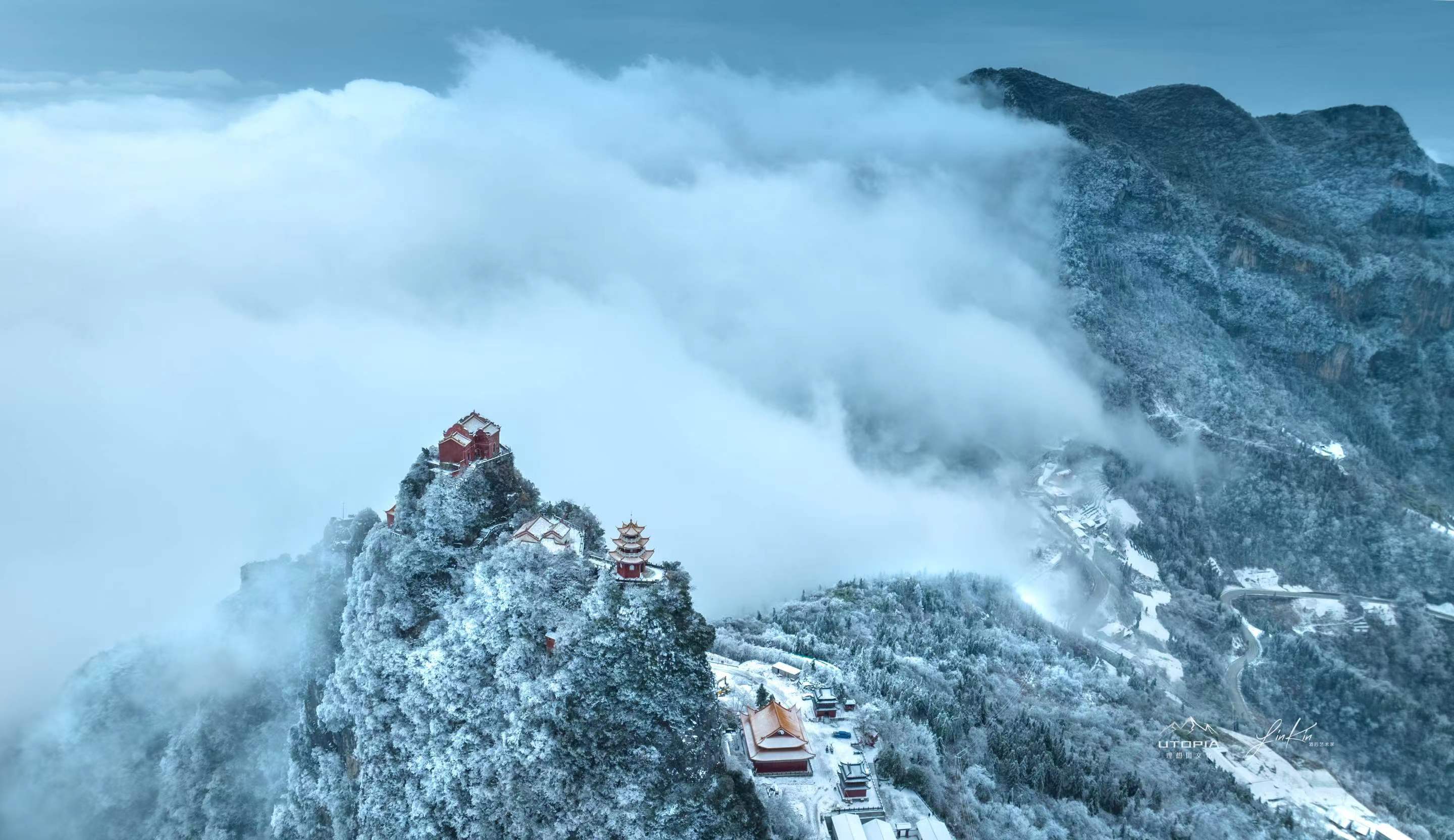 Feast your eyes on this magnificent winter landscape! The snow-blanketed Tianzhu Mountain shows off its otherworldly beauty amid a rolling sea of clouds. Famous in Taoism, the mountain is dotted with temples.