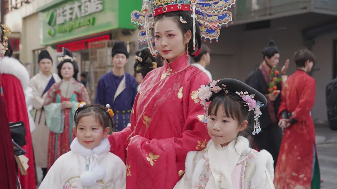 Performers put on traditional Chinese Hanfu clothing to stroll around the fair and take photos with visitors.