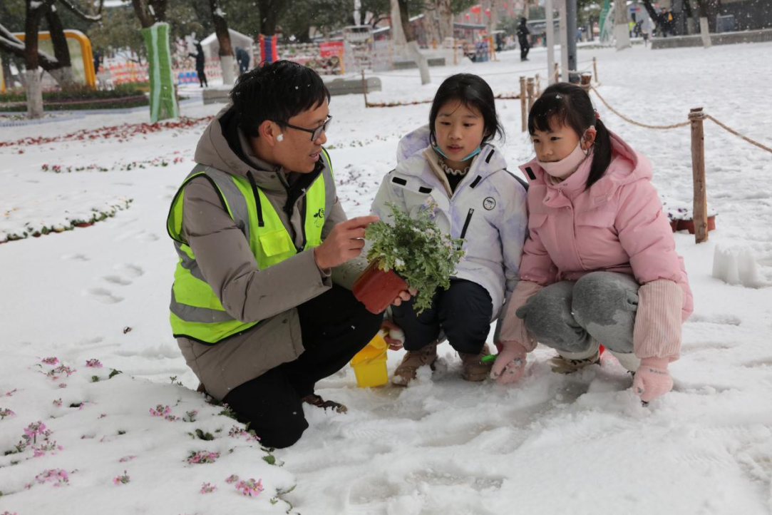 The worker is introducing the history of Yichang primrose to the children. Photo by Li Yalong.