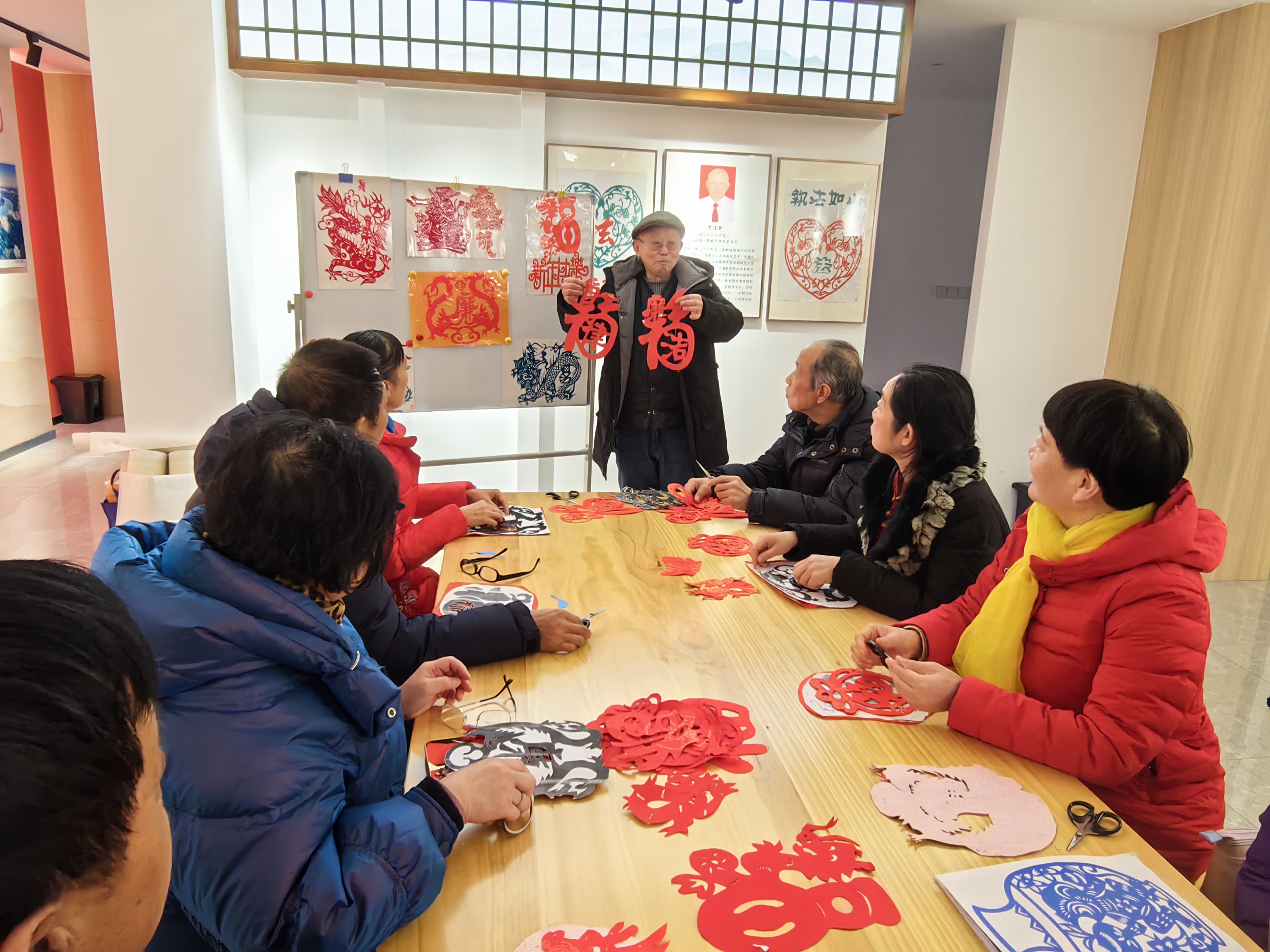 Yidu-based artist Ai Daoxin and his trainees are busy making dragon-themed papercuts to mark the Year of the Dragon.