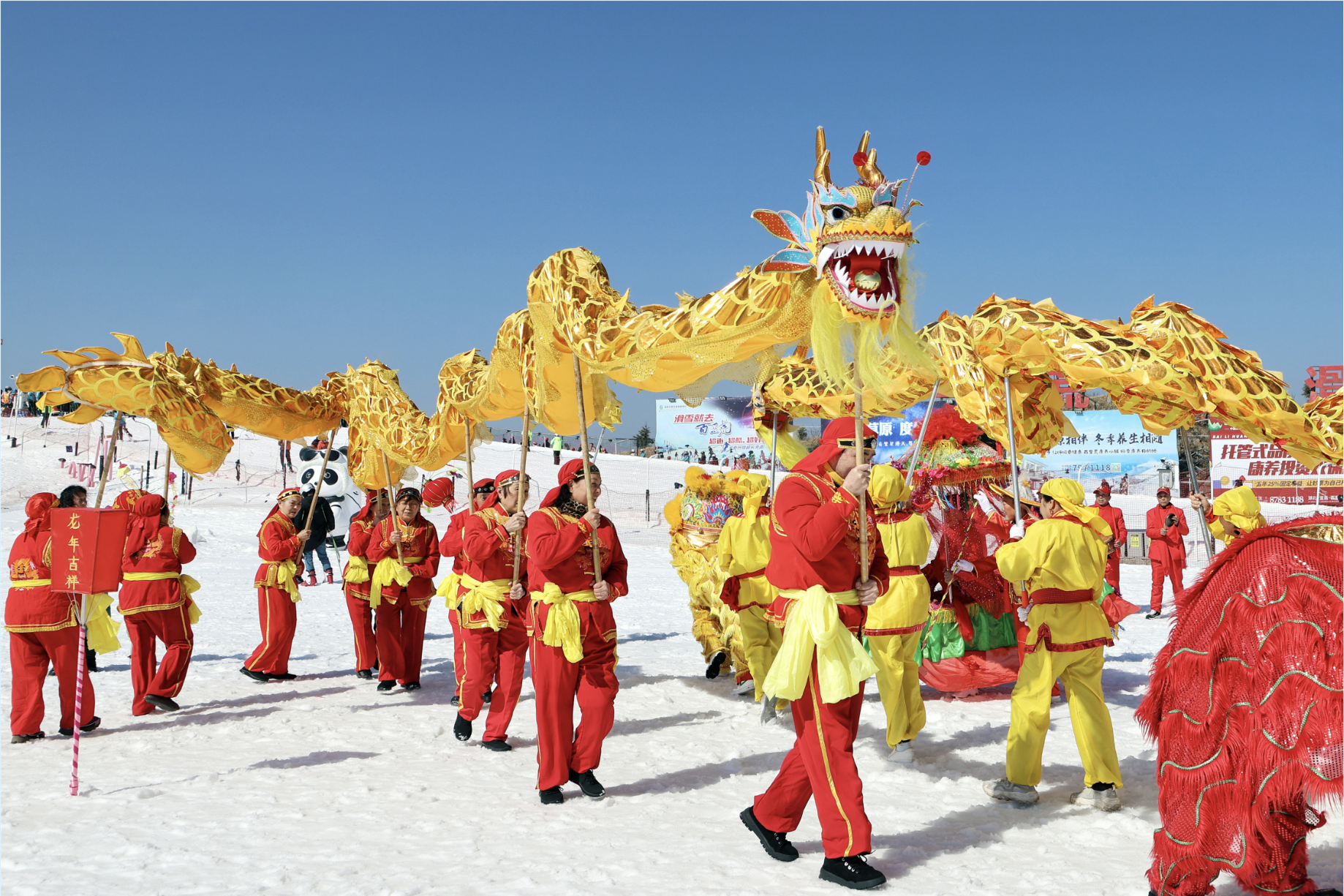 Dragon dance at the Bailihuang Scenic Area ski resort
