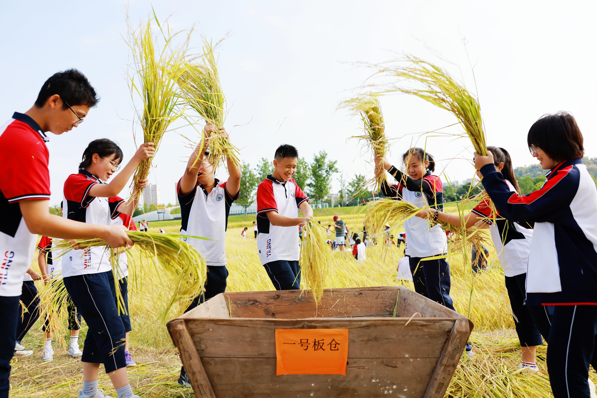Students harvest rice on Autumn Equinox