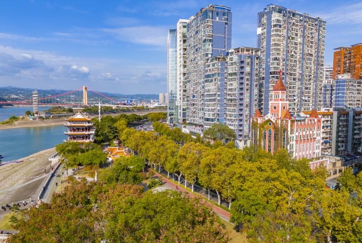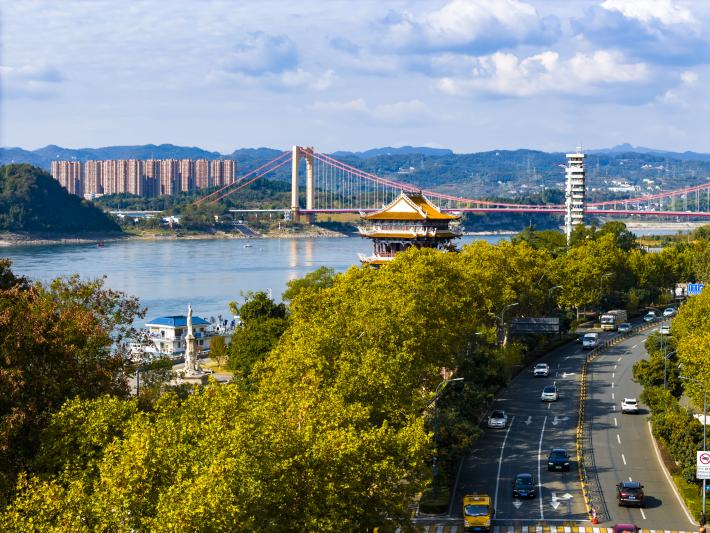 Golden sunlight pours over the riverside promenade and casts a warm, inviting glow. Whether strolling along the walkway or admiring the scenery from the observation deck, visitors can enjoy its vibrant beauty at every turn.