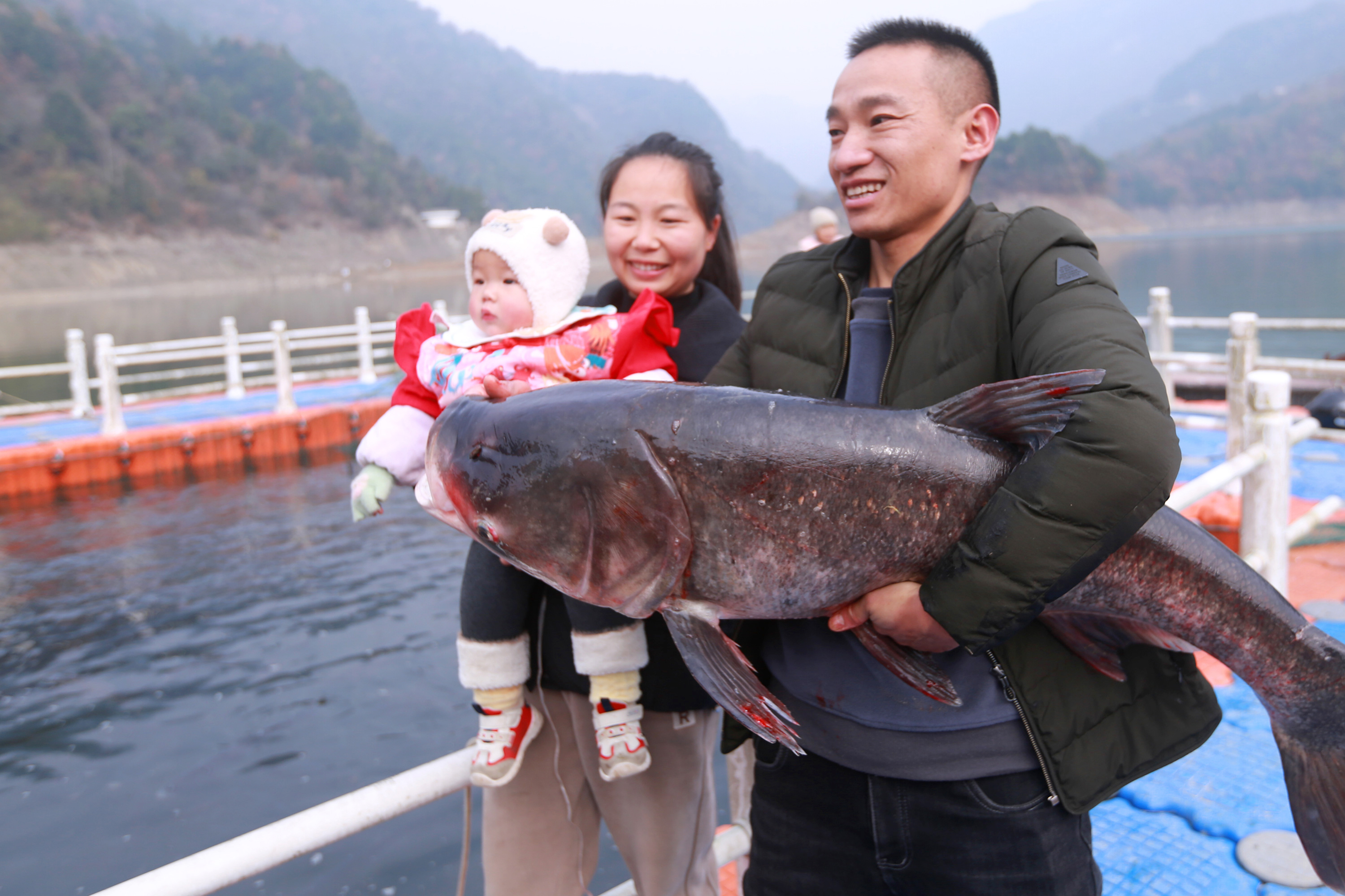 Fishermen brought in their first catch at Shengping Reservoir on Tuesday as the winter fishing season officially began. The biggest fish weighed over 40 kilograms! The reservoir is teeming with fish, including bighead carp, silver carp and grass carp.