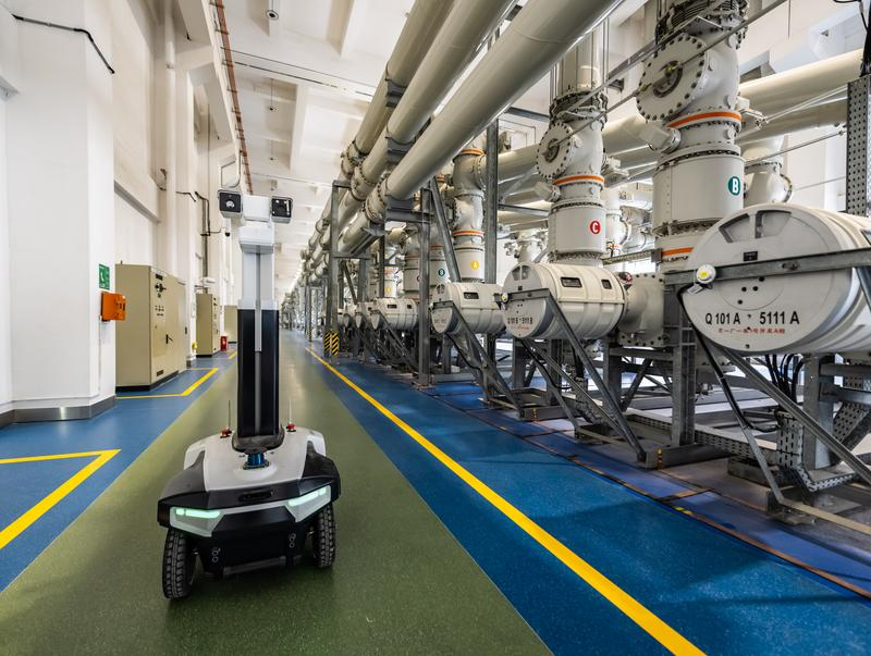 A Fastwalker Robot inspecting the GIS switch room at the Three Gorges Dam's left bank power station.