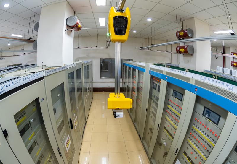 A Skywalker Robot inspecting equipment in the auxiliary room of the Three Gorges Dam's left bank power station.