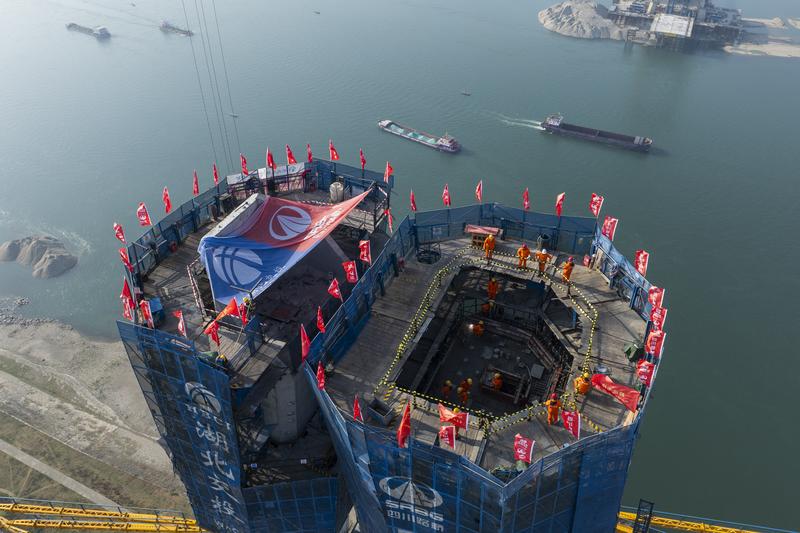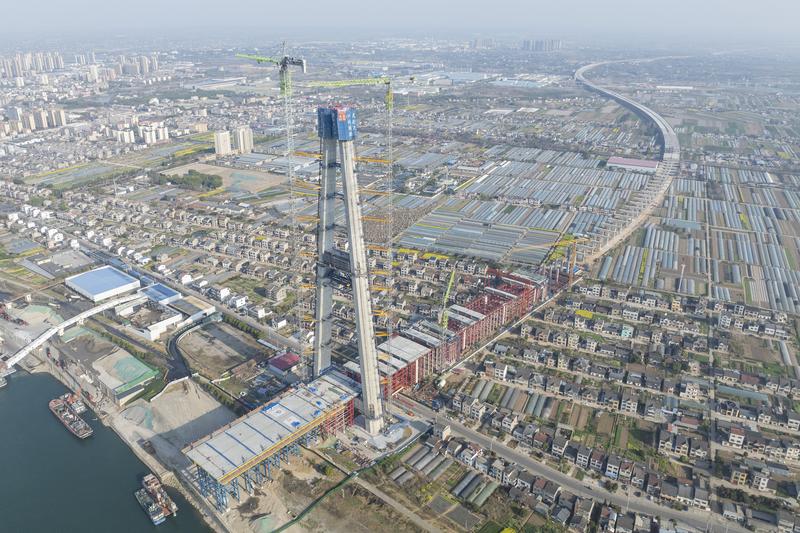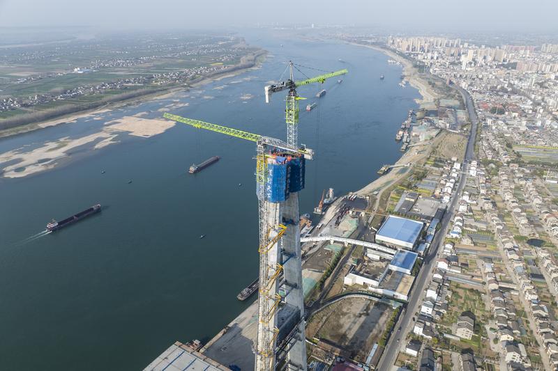 The 241-meter north tower of the Zhijiang Bailizhou Yangtze River Bridge was topped out on March 21. This 1,549-meter bridge is a key component of the Dangyang-Zhijiang-Songzi Expressway and is expected to open in 2026.