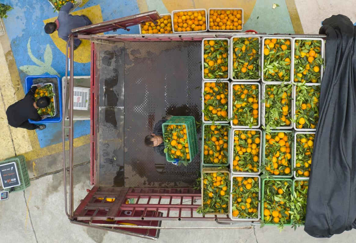 Orange farmers in Zigui County are now using drones to transport freshly picked Lunwan navel oranges. Thanks to improvements in orange varieties, Zigui can supply fresh navel oranges year-round.