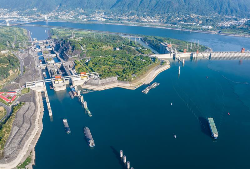 Ships pass through the Three Gorges Dam via the Three Gorges locks. Photo by Zheng Jiayu.