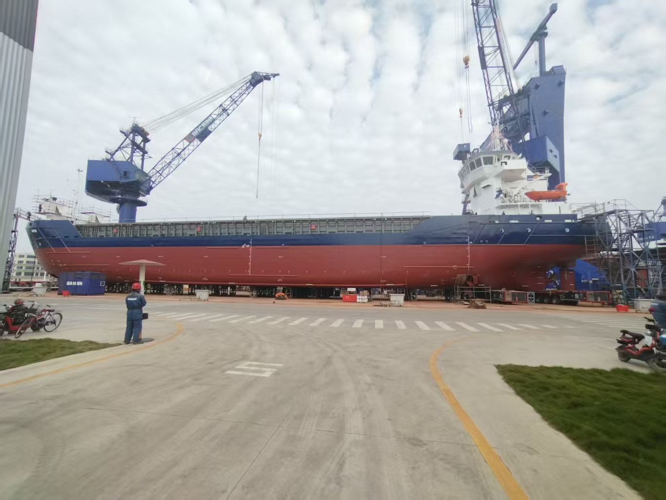 The Yidu Green Intelligent Ship Industrial Park is bustling with activity. Damen Yichang Shipyard, the park’s first tenant, is running at full capacity to fulfill an order book of 20 vessels. A multi-functional container ship bound for Germany is now in its final checks before launch. The 89-meter-long vessel features a wind-assisted propulsion system that can cut fuel use by about 40%.