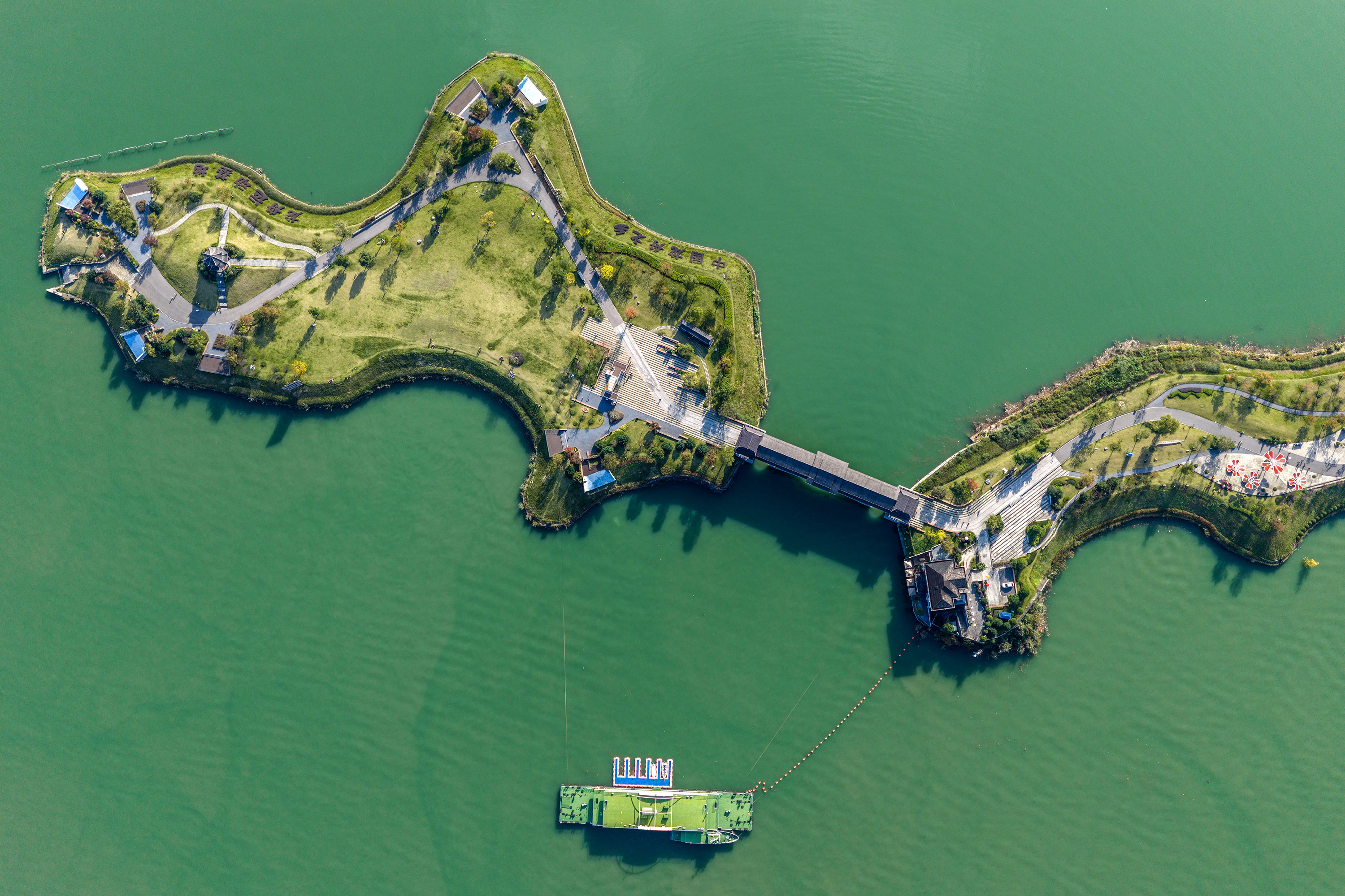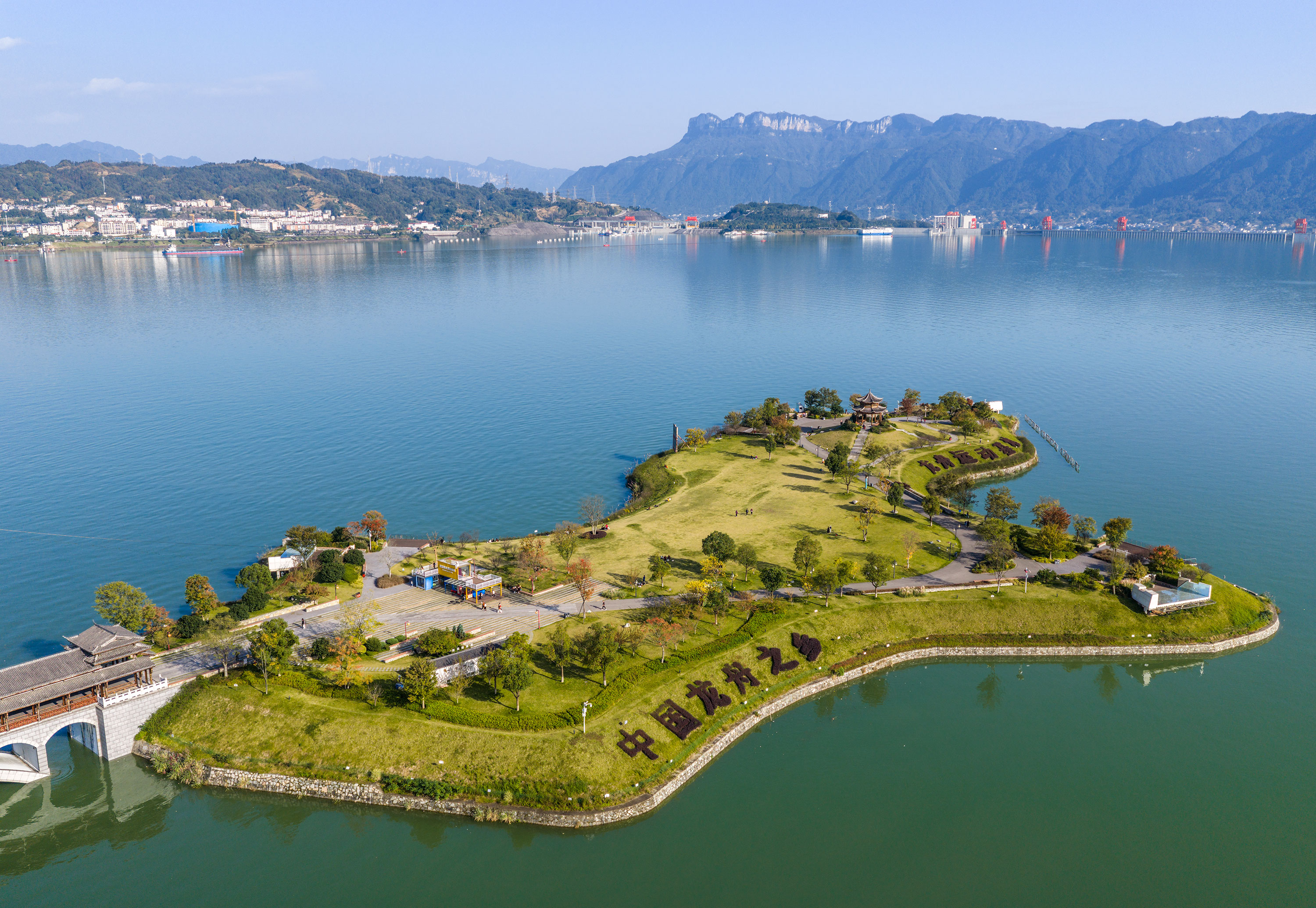 Early winter has arrived, bringing together colorful forests and rippling blue waters. Visitors are enjoying peaceful moments on Muyu Island.