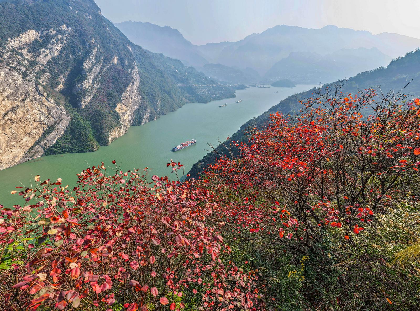 Vessels move through Xiling Gorge as a cool breath of early winter brings light frost and mist, giving the gorge the look of a traditional ink painting.