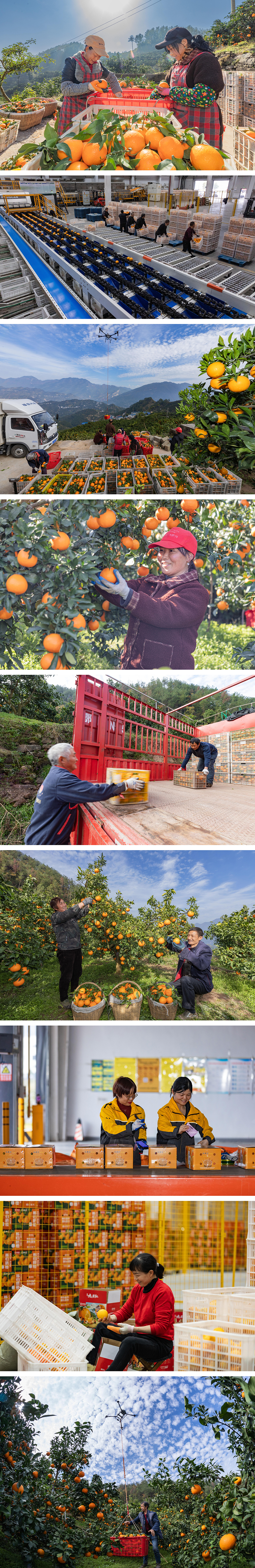 Zigui County is buzzing with activity as its 400,000 mu of navel oranges reach peak ripeness for harvest. Farmers began picking, sorting, packing, and transporting the fruit on November 26, kicking off a busy season. This year's harvest highlights the success of Zigui's "e-commerce + supply chain + farmers" model, which has significantly increased sales and farmer incomes in recent years.
