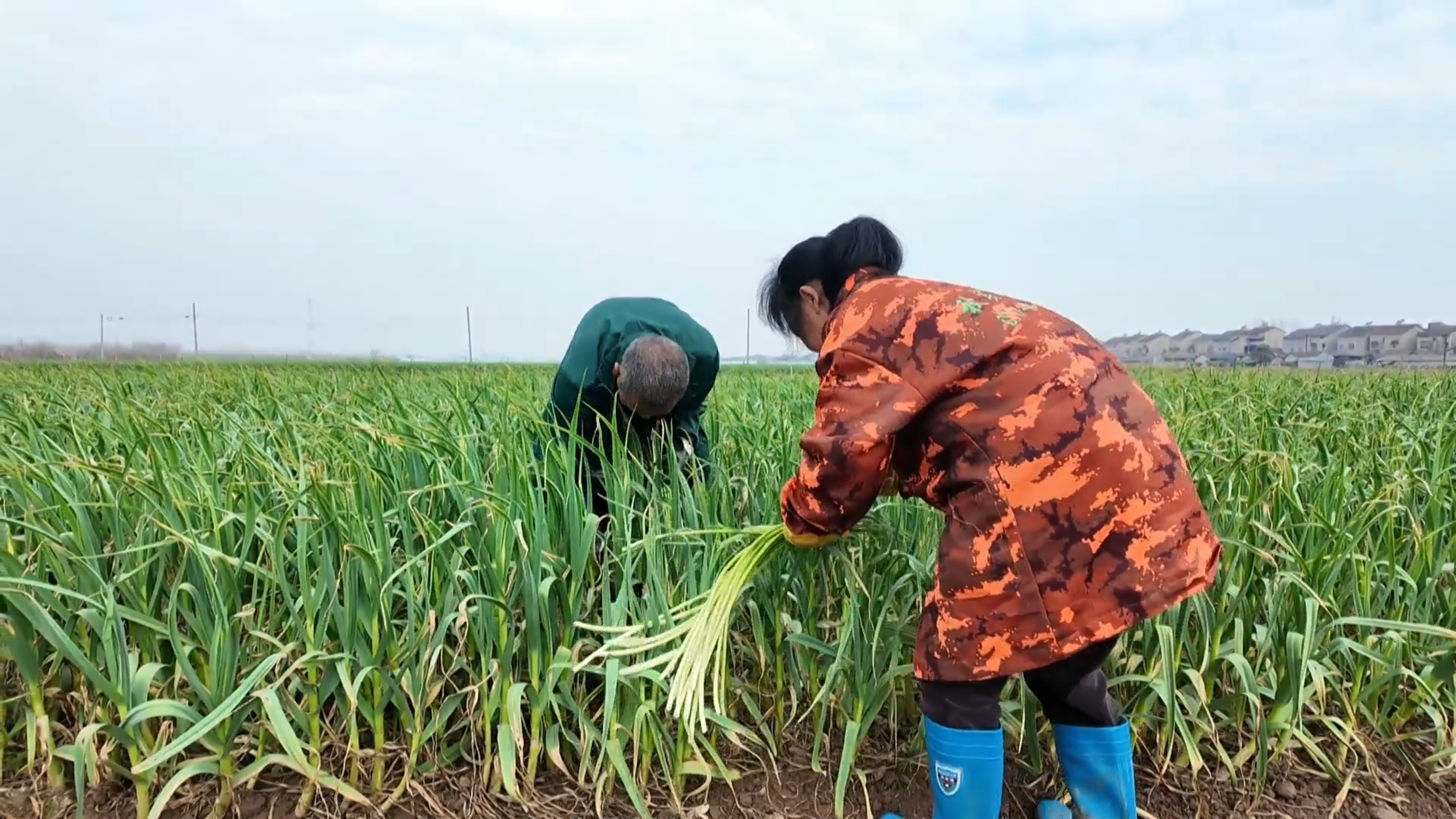 The garlic shoots in Jianghuisi Village, Zhijiang City, are in their early harvest phase. Local farmers are busy picking the crop while cooperatives sort and ship the produce promptly. This premium vegetable is reaching markets nationwide, delighting consumers and boosting incomes for the local community.
