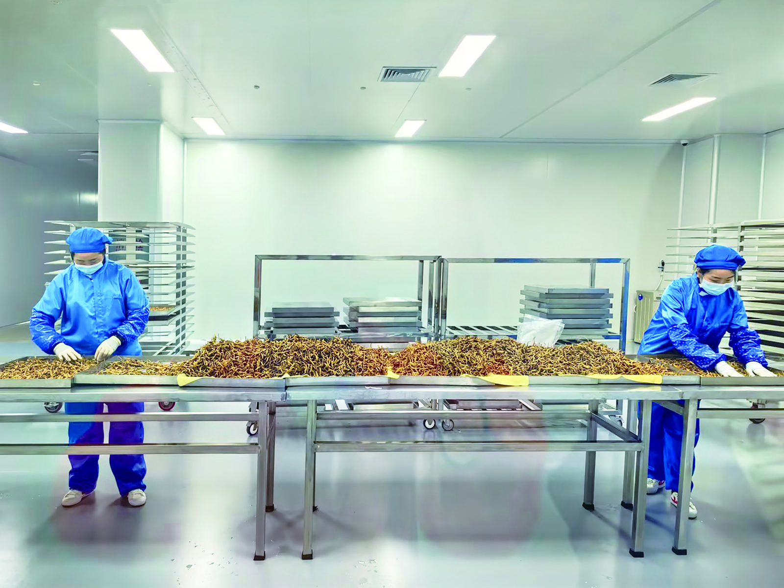 Now, HEC's Yidu base has developed a series of Chinese caterpillar fungus products such as fresh, dried and freeze-dried fungus, lozenges and beauty and skincare products. The annual output can reach 60 tons with a value of nearly 10 billion yuan.