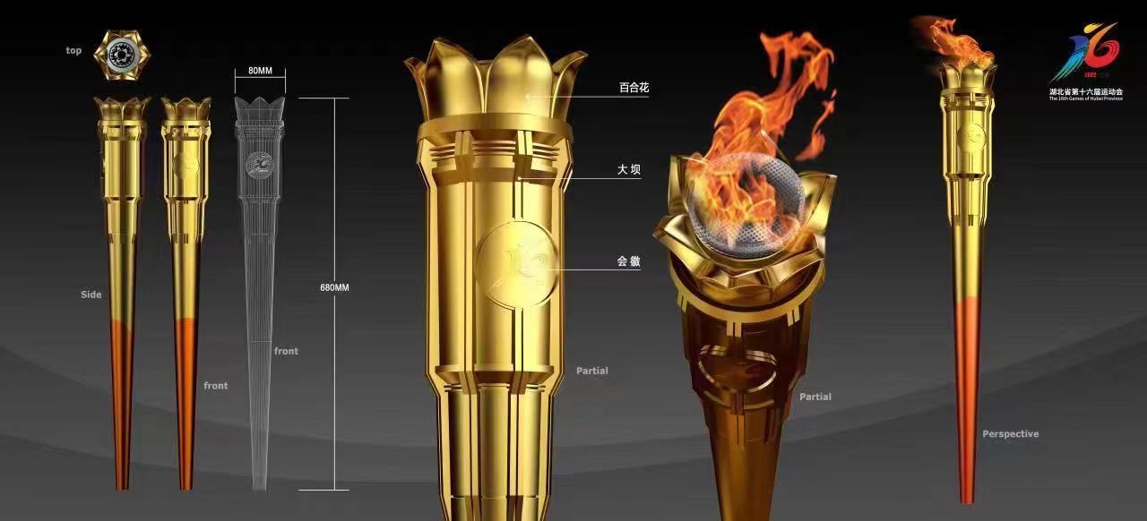 The torch for the 16th Hubei Games, inspired by Yichang's lily flower and the Three Gorges Dam, has been unveiled.