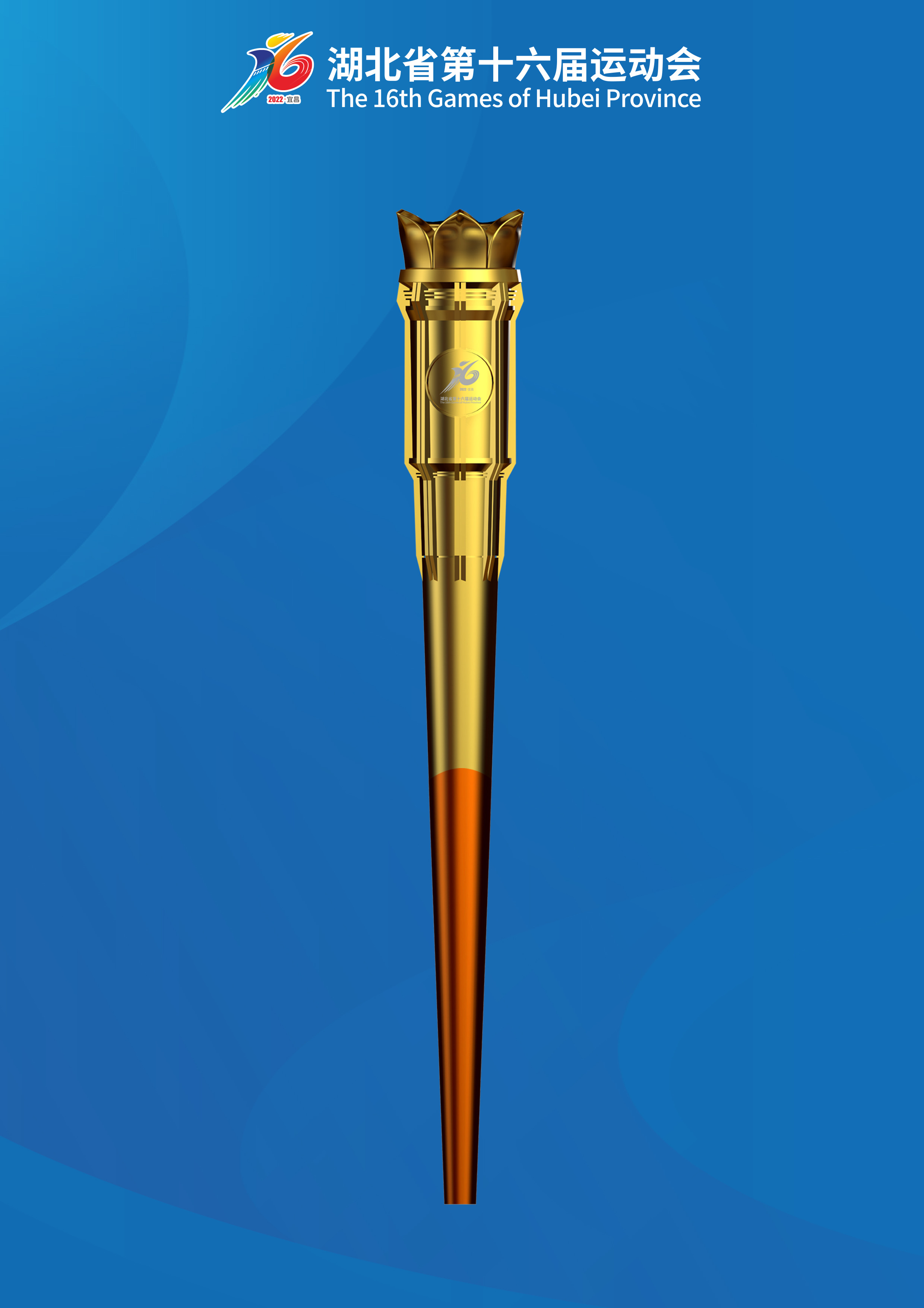 The logo and text relating to the 16th Hubei Games are printed on the front of the torch.
