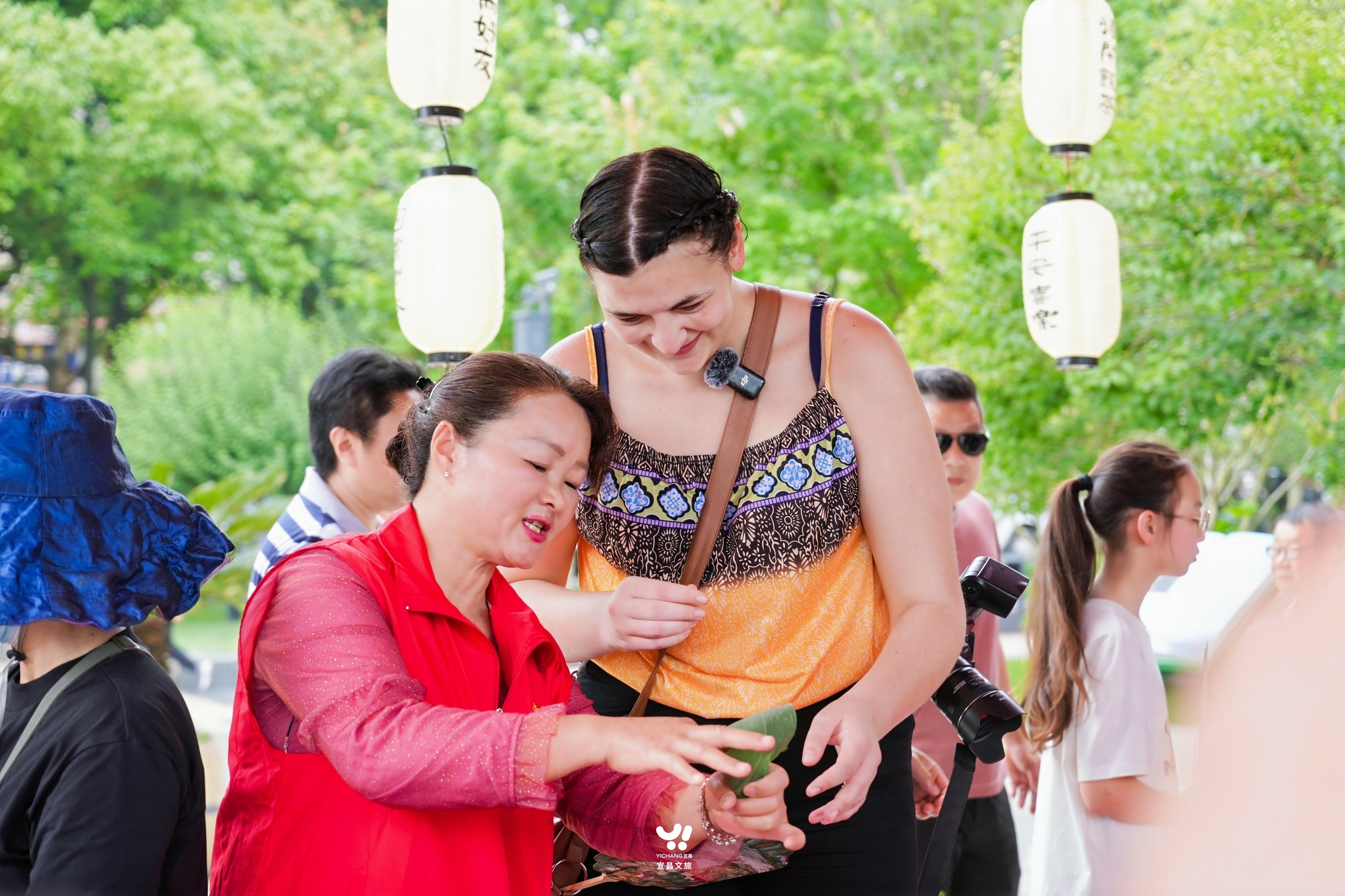 A foreigner learns how to make zongzi at the 2024 Dragon Boat Festival Market. Photo from Yichang Culture and Tourism Bureau.