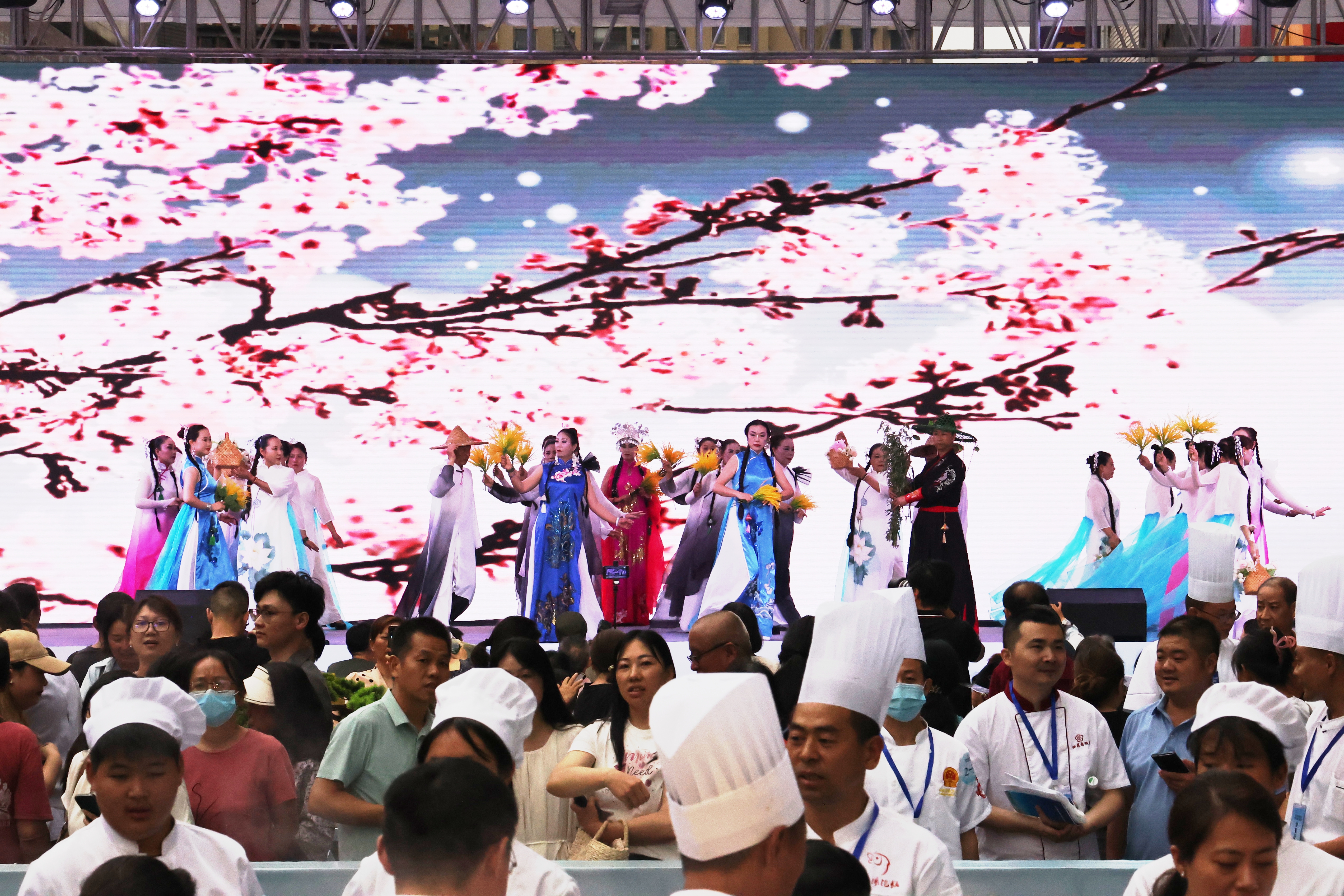 During the opening ceremony, Jiefang Road Pedestrian Street was crowded and bustling with music and dance. One hundred well-known catering enterprises and dozens of master chefs from the Yichang-Jingzhou-Jingmen Metropolitan Circle attended the event. Tourists and food enthusiasts from all over the country sampled delicacies at various booths.