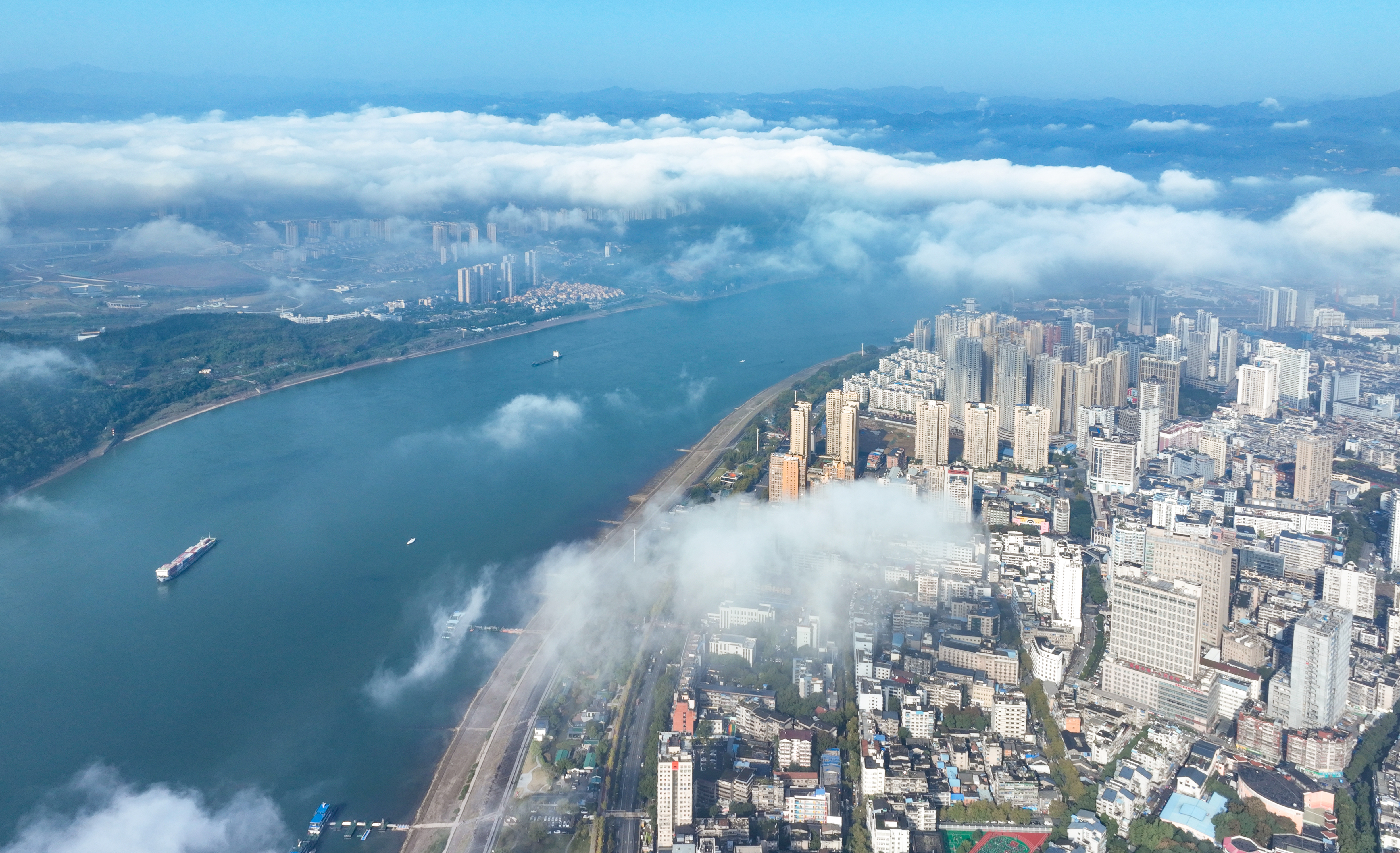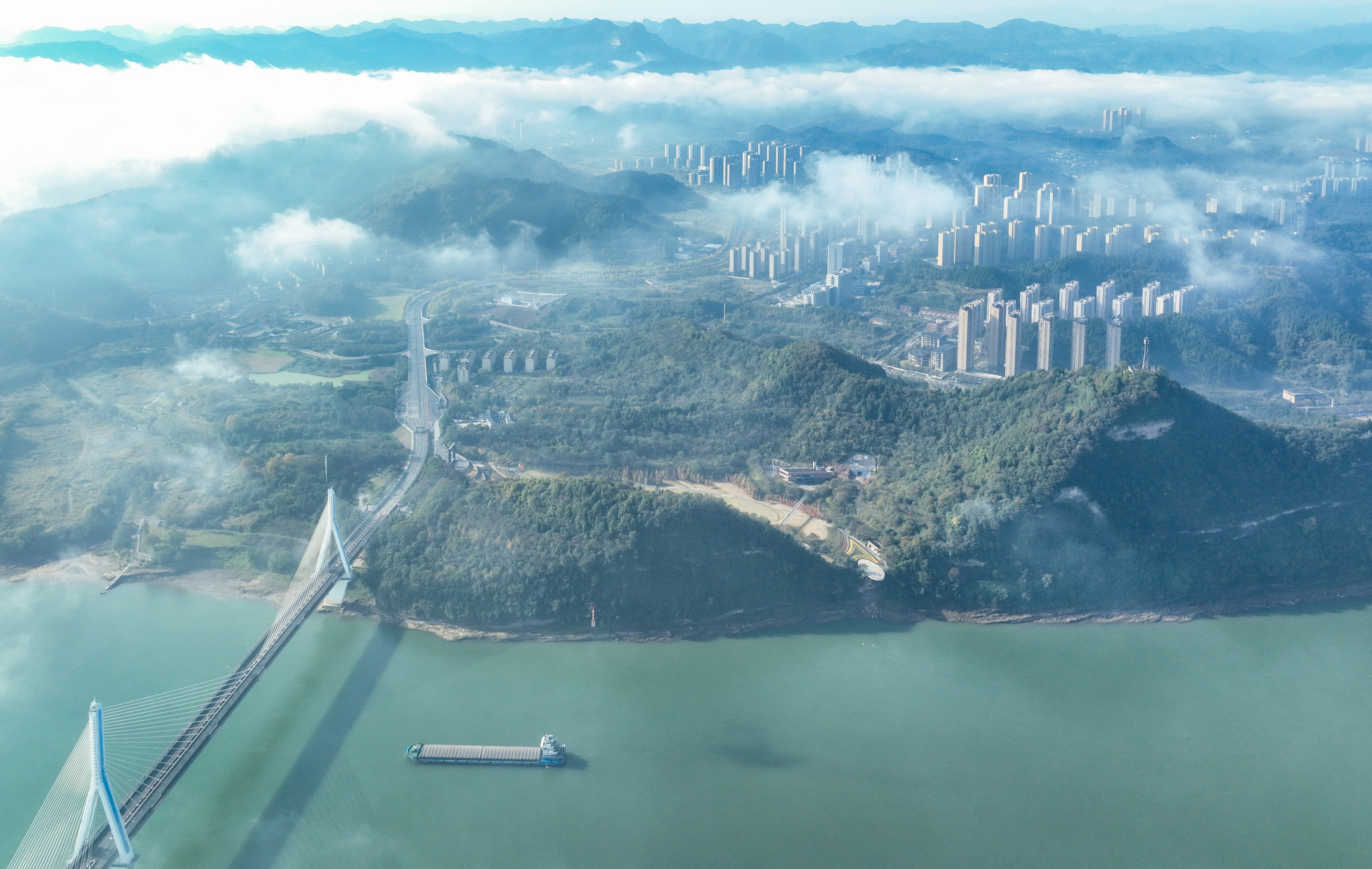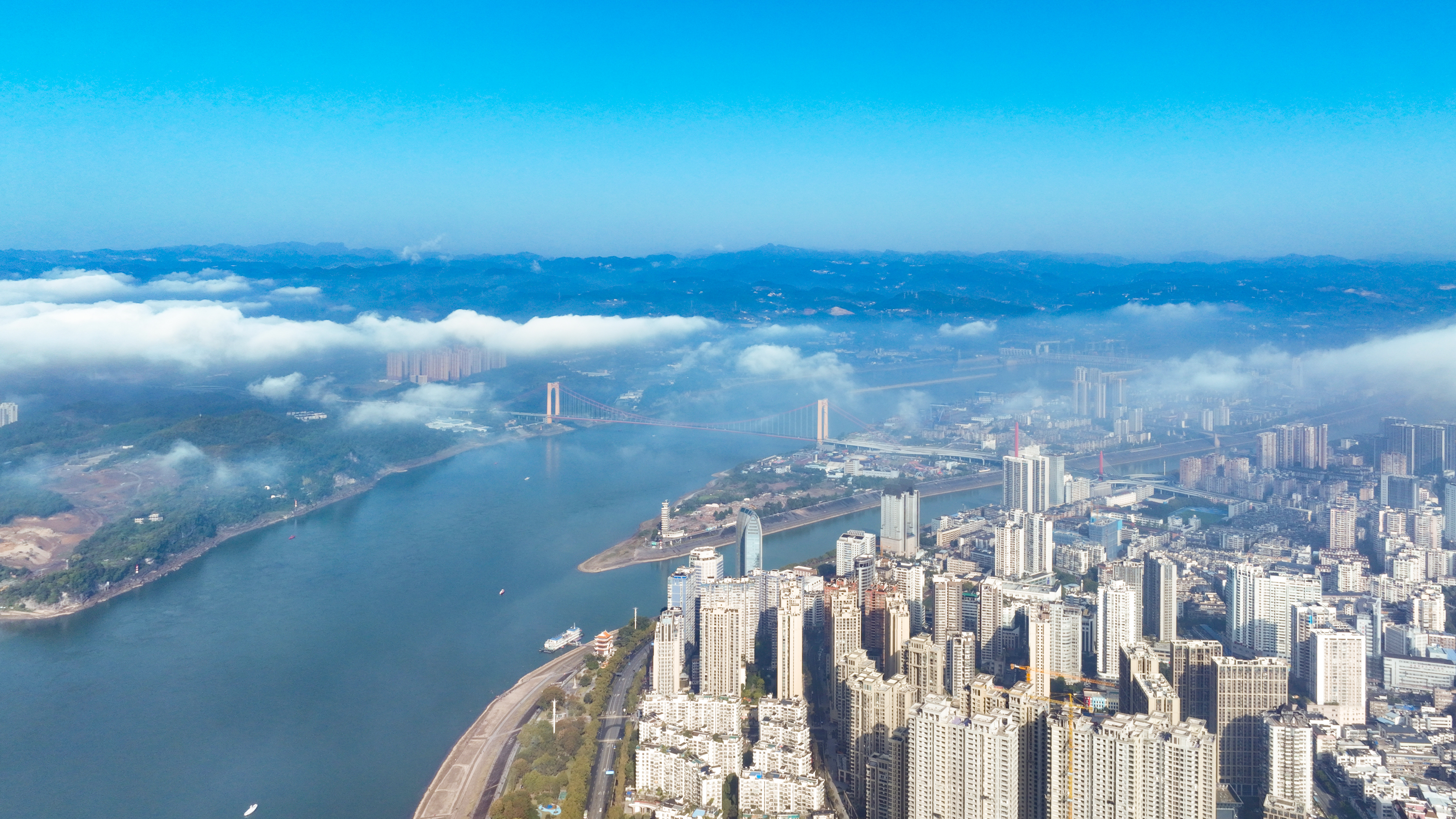 After several days of overcast and rainy weather, the sky in Yichang has finally cleared up to reveal the Yangtze River, the mountains, the Yiling and Zhixi Yangtze River Bridge, and a swathe of high-rises dotted across the landscape.